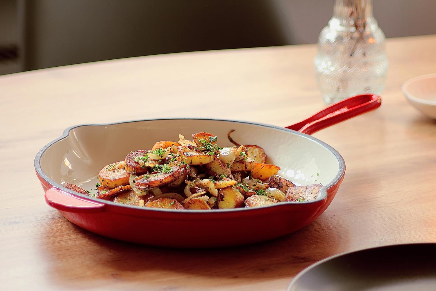 - HOCHWERTIGES KOCH-EQUIPMENT - Die Bratpfanne aus Gusseisen eignet sich für alle Herdarten. Dank der Versiegelung mit einer Emaille-Schicht lässt sich die Offenpfanne mühelos reinigen und hält locker hohen Temperaturen stand.