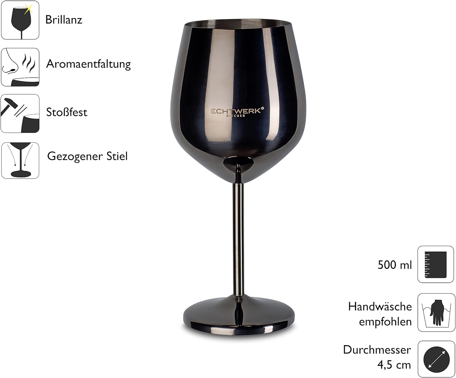 - Bruchsichere und sehr robuste Weingläser aus hochwertigem Edelstahl.