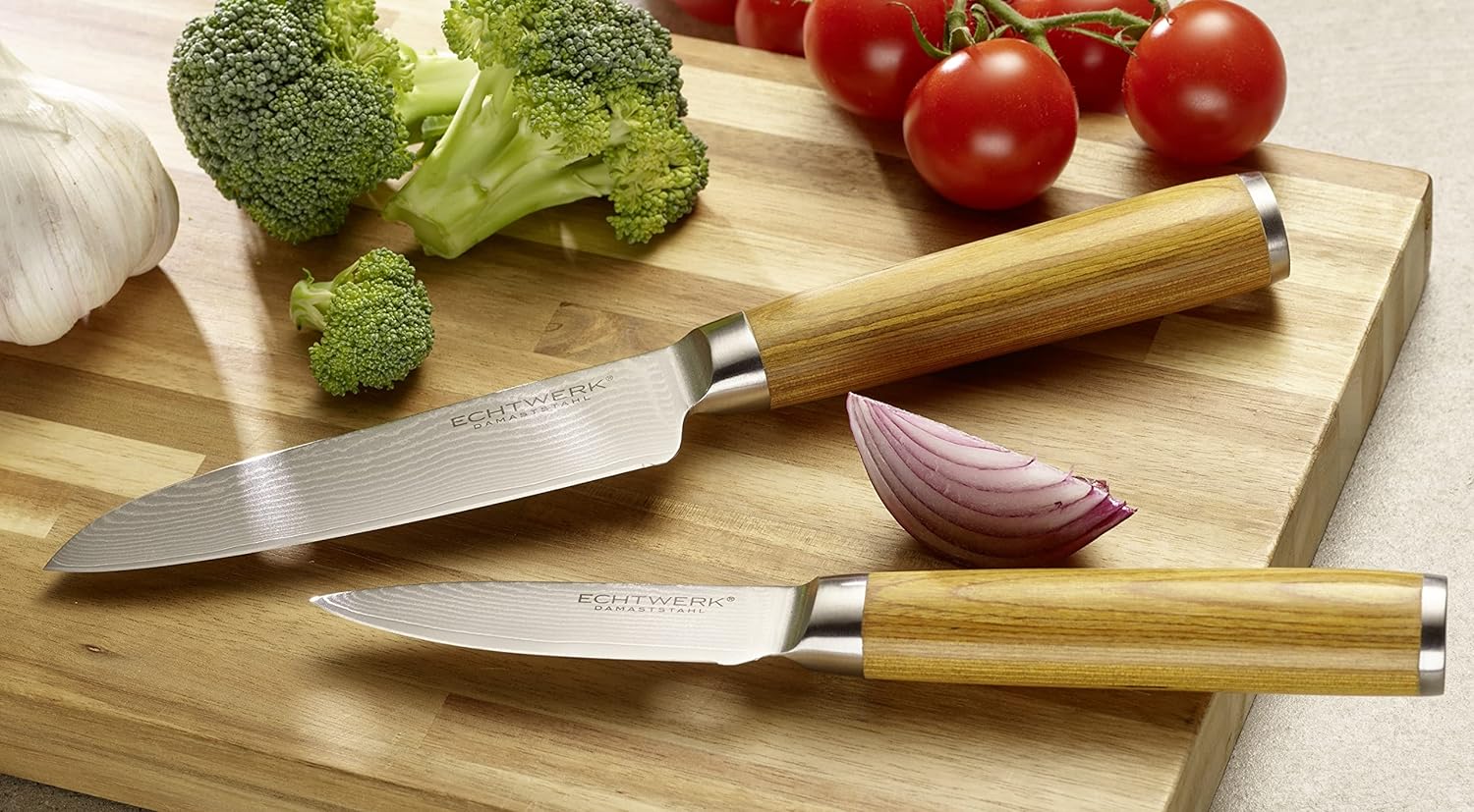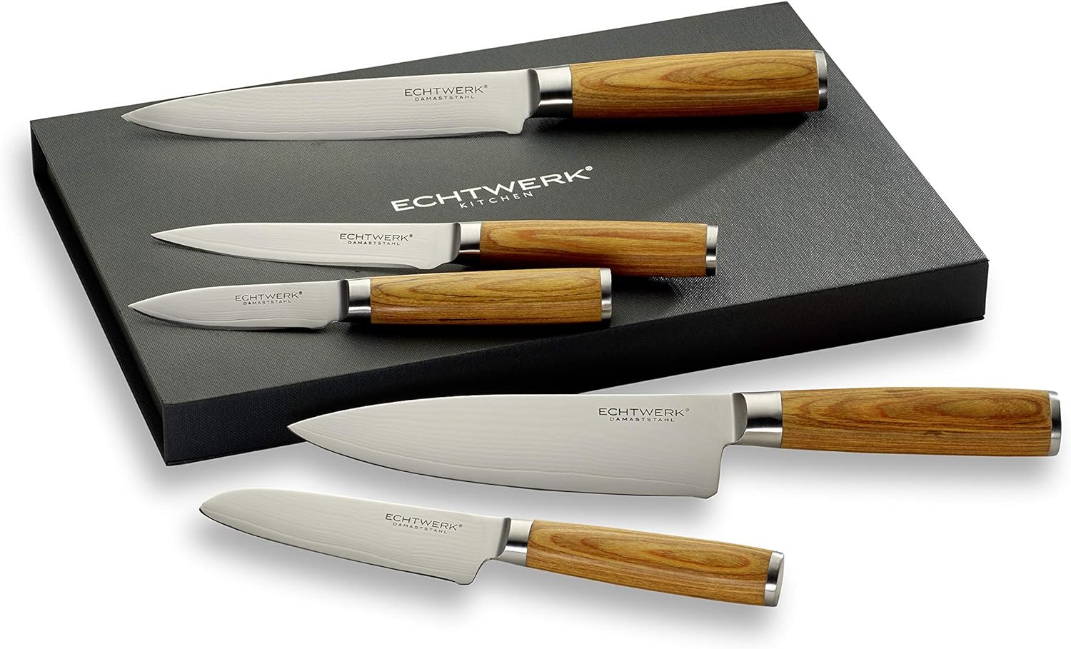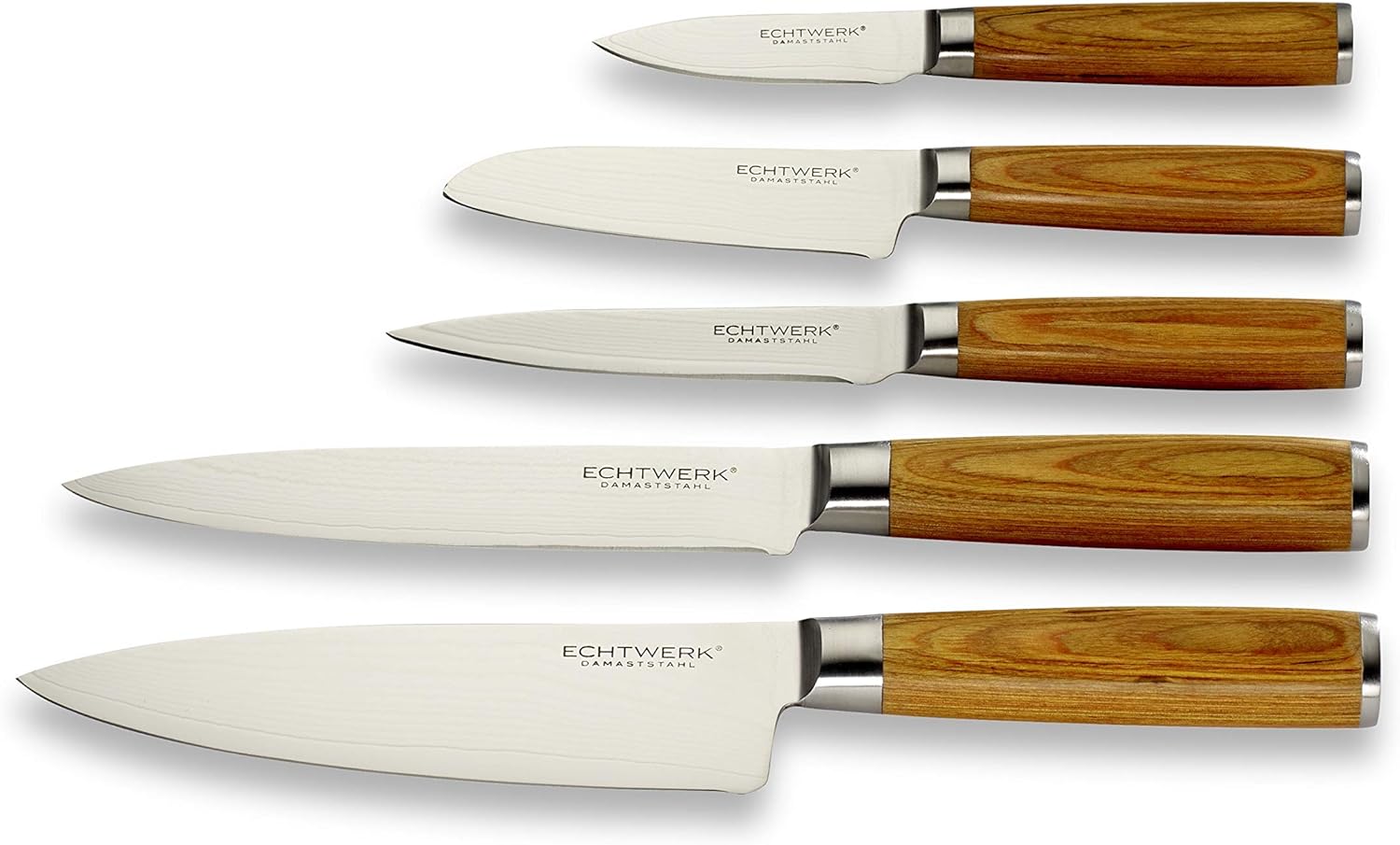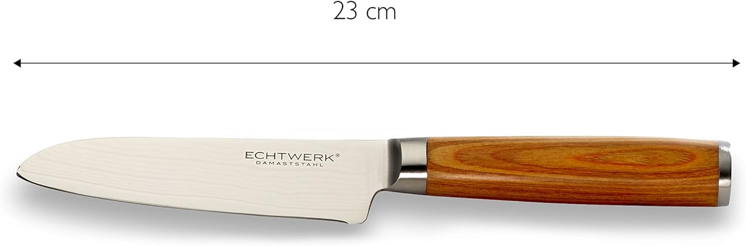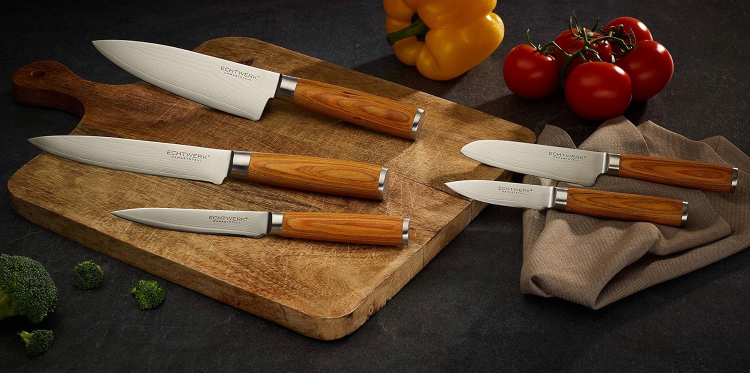 Echtwerk Damastmesser Set 5 teilig, Küchenmesser, Damaszener, Messer mit Holzgriff, Braun/Silber 36