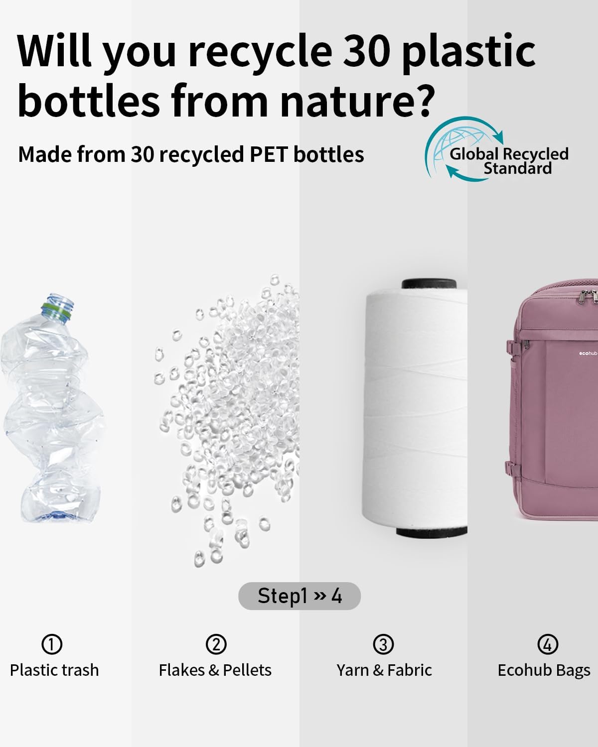 - 【Garantiert】: ECOHUB rucksack 40x20x25 Hergestellt aus wasser- und reissfestem Material, das aus 30 GRS-zertifizierten recycelten PET-Plastikflaschen gewonnen wird. Ausgestattet mit robusten SBS-Reissverschlüssen und verstärkten Rip-Stop-Nähten