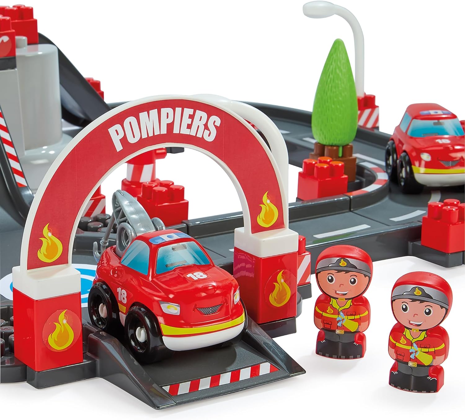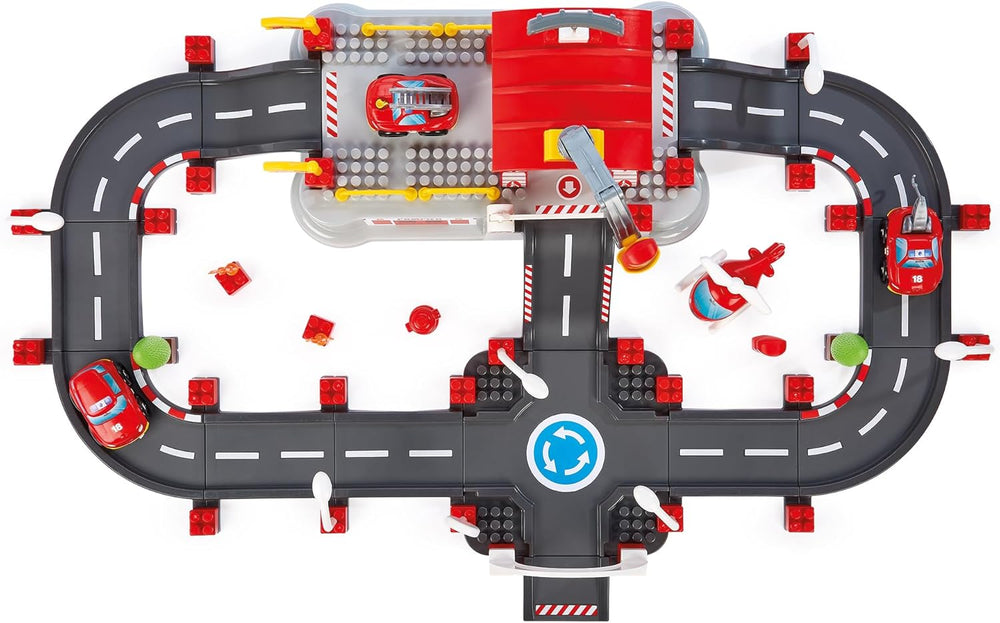 - GROSSE UND PRAKTISCHE TROMMEL: Diese Trommel enthält eine grosse Bahn zum Zusammenbauen sowie alle Elemente, um ein Feuerwehr-Universum und seine Umgebung zu schaffen. Der Deckel der Trommel dient als Spielbasis, um die Feuerwehrwache und ihre Strecke