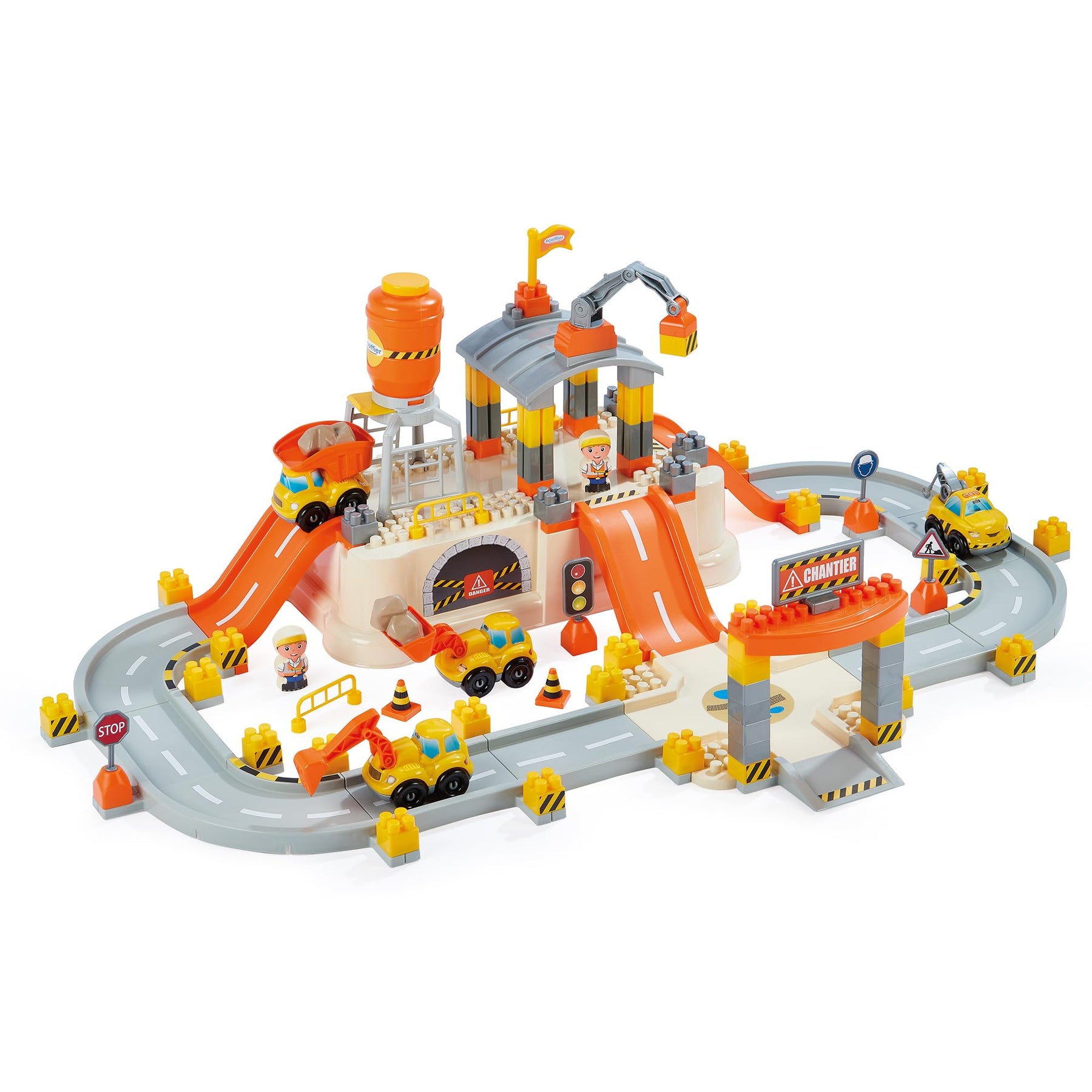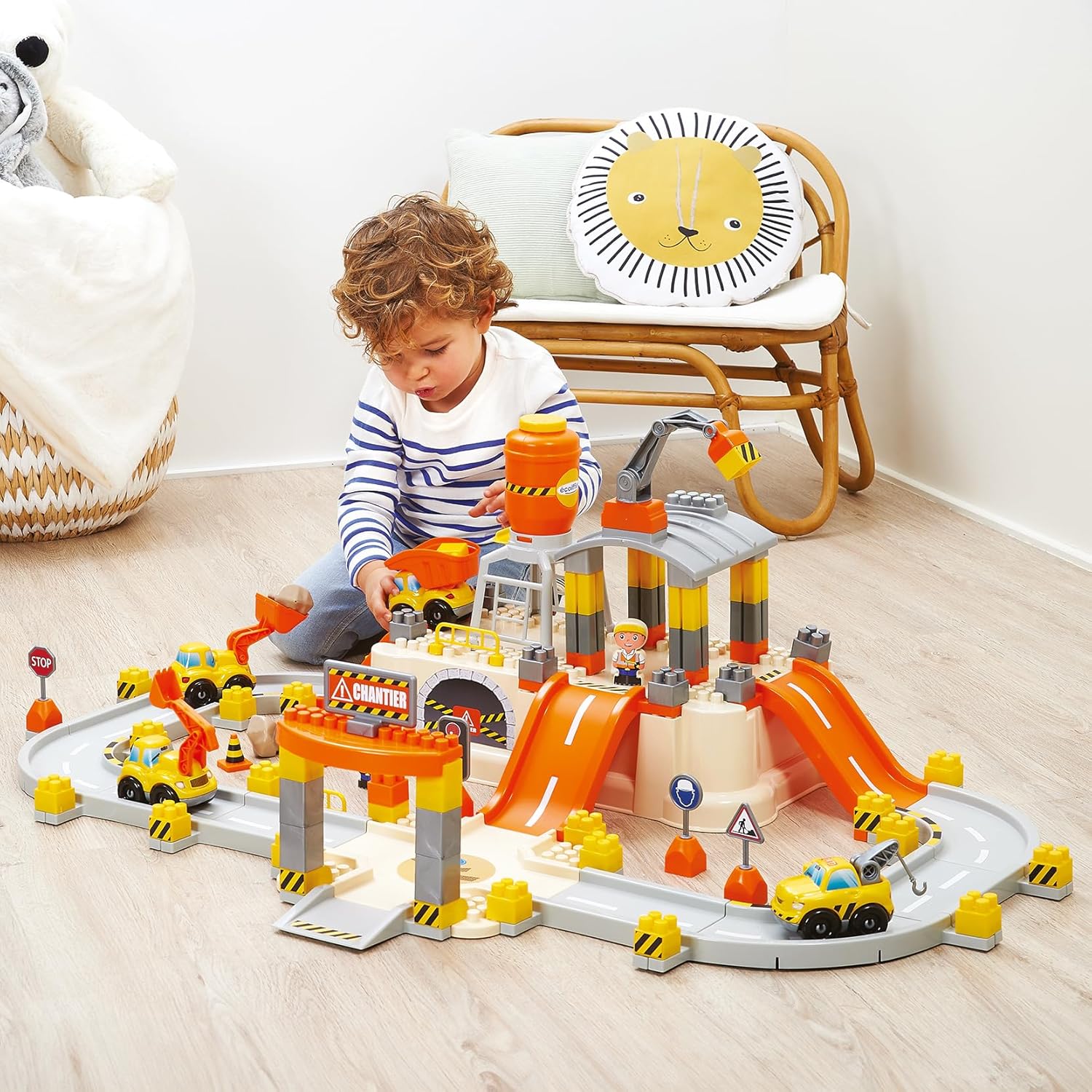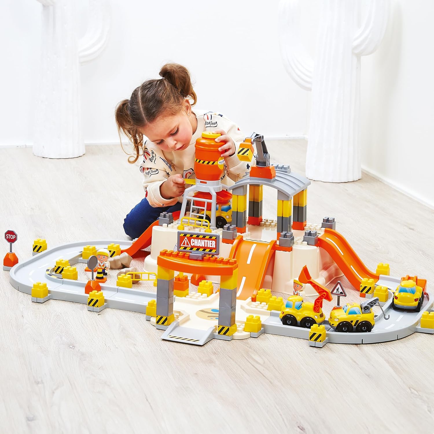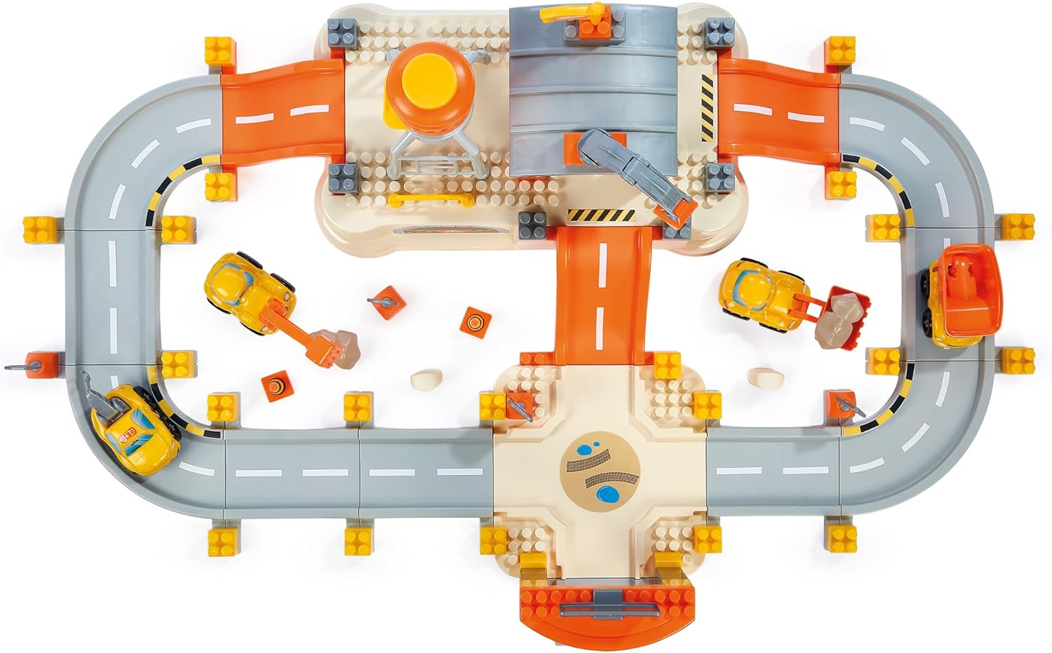 - GROSSE UND PRAKTISCHE TROMMEL: Diese Trommel enthält eine grosse Strecke zum Zusammenbauen sowie alle Elemente, um eine Baustellenumgebung und deren Umfeld zu schaffen. Der Deckel der Trommel dient als Spielebasis, um die Feuerwache sowie deren Strecke