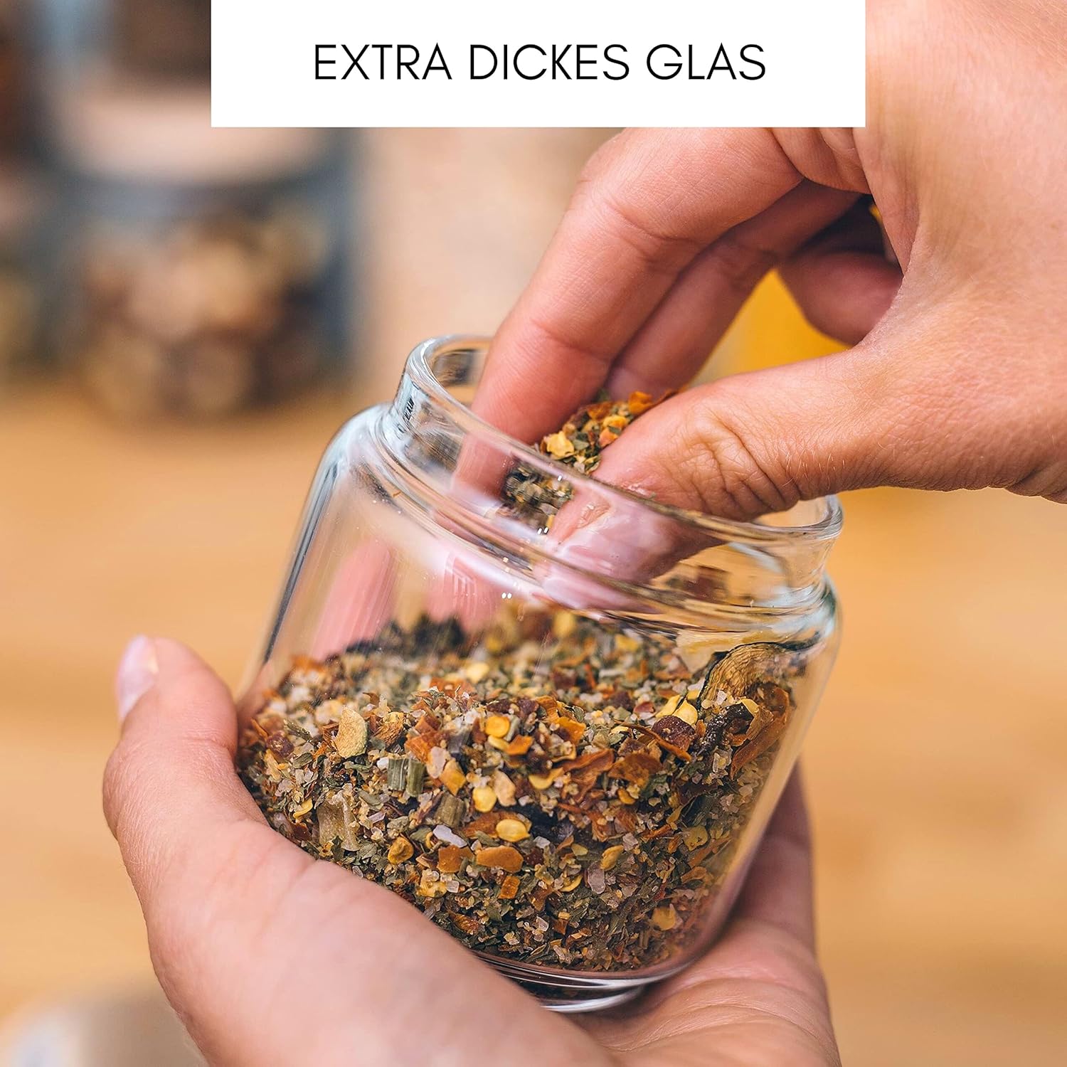 - ✔️ VIELSEITIG UND ROBUST: Unsere Gewürzdosen bestehen aus extra dickem Borosilikatglas. Das strapazierfähige Material macht sie universell einsetzbar sowie mikrowellen- und spülmaschinenfest!
