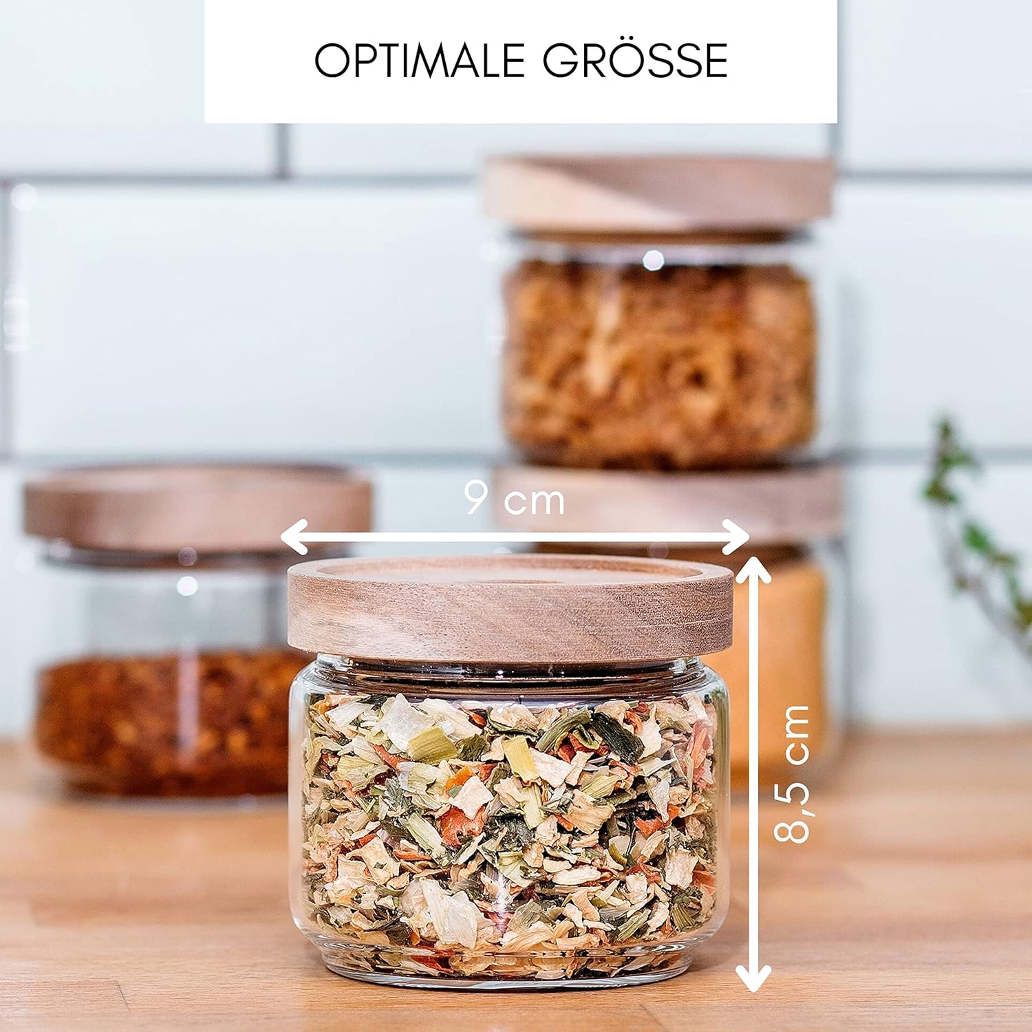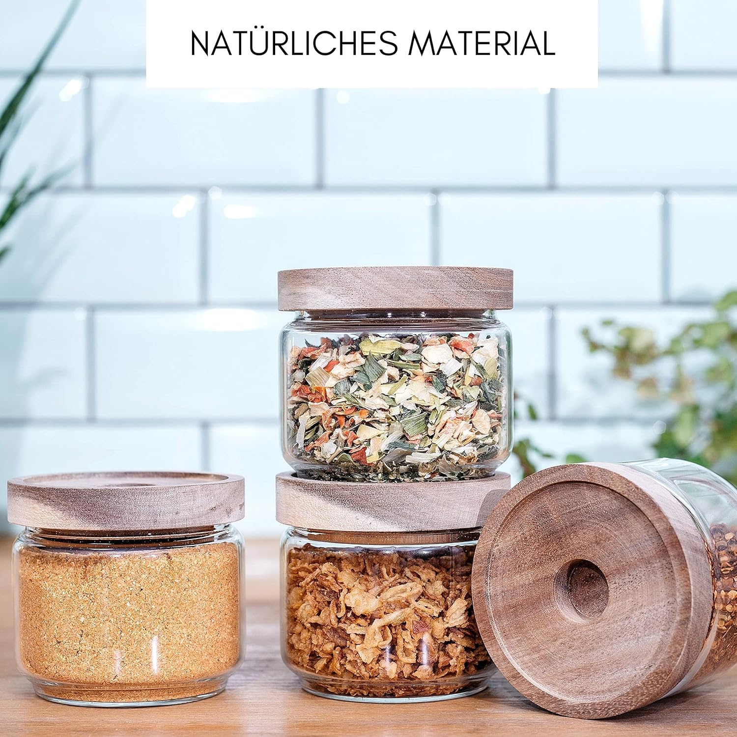 - ✔️ ZERTIFIZIERTER HOLZDECKEL: Um schädliche Chemikalien zu vermeiden, verwenden wir lediglich unbehandeltes Akazienholz. Die natürliche Maserung macht jedes Aufbewahrungsglas zum Unikat!