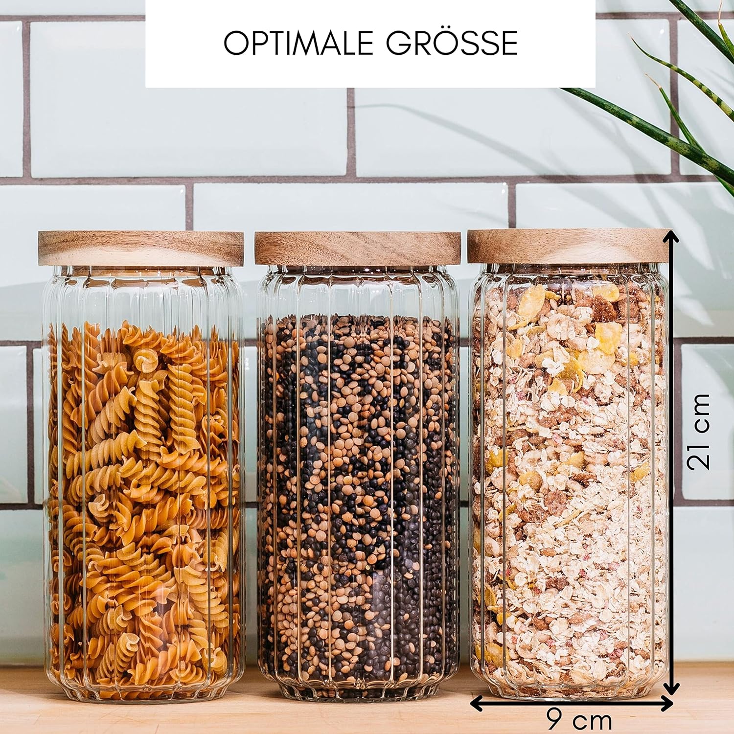 Econovo® Vorratsgläser mit Deckel geriffelt (1000ml | 3-tlg.), stapelbar und luftdicht, Vorratsbehäl