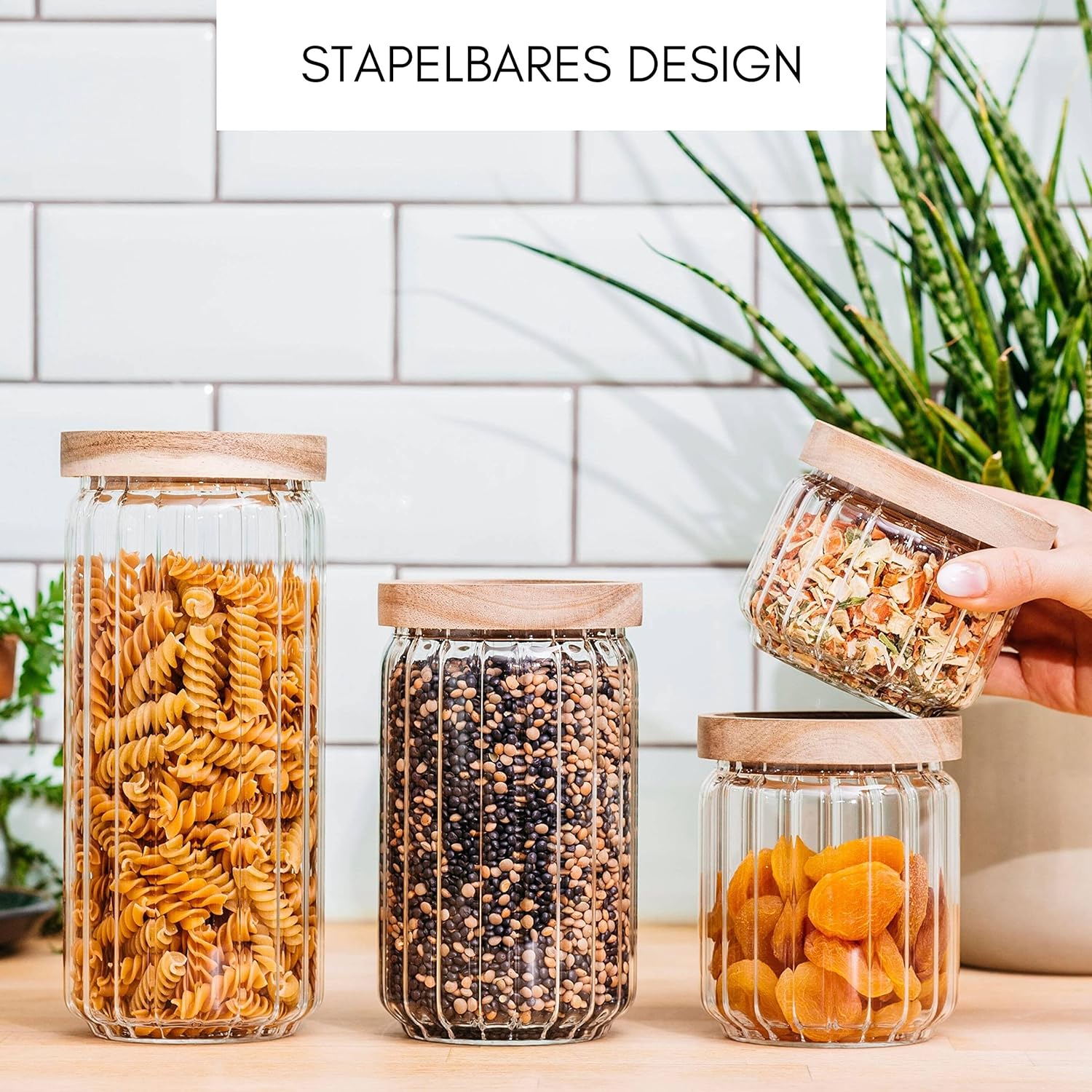 • ✔️ PLATZSPARENDES DESIGN: Die elegante Form von Glas und Deckel macht die Küchenbehälter stapelbar. So werden die hochwertigen Glasdosen zum idealen Organisationstalent für jede Küche!