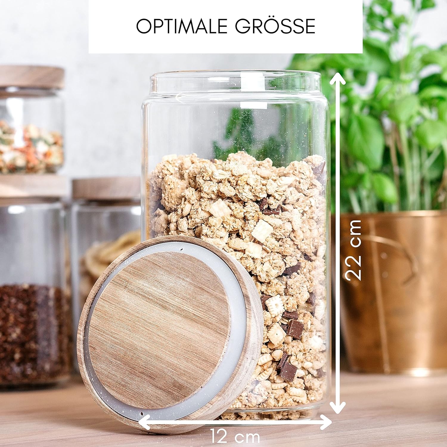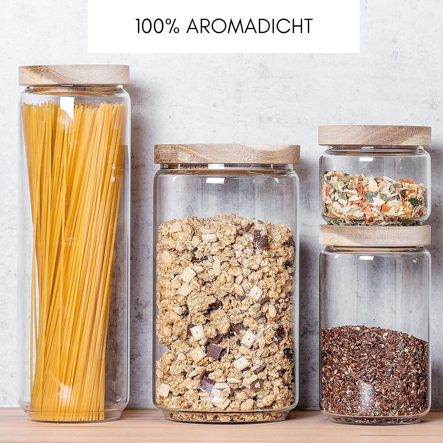 - ✔️ PLATZSPARENDES DESIGN: Die elegante Form von Glas und Deckel macht die Küchenbehälter stapelbar. So werden die hochwertigen Glasdosen zum idealen Organisationstalent für jede Küche!