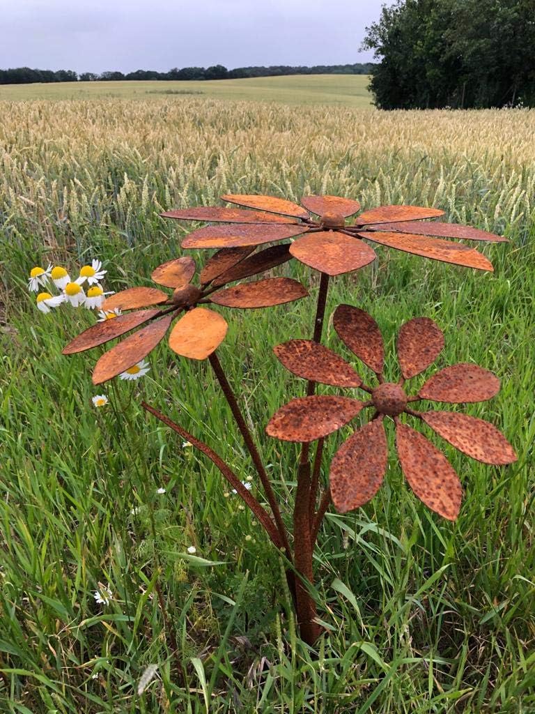 - Material Eisen verrostet, sehr stabil durch zwei Bodenstecker.