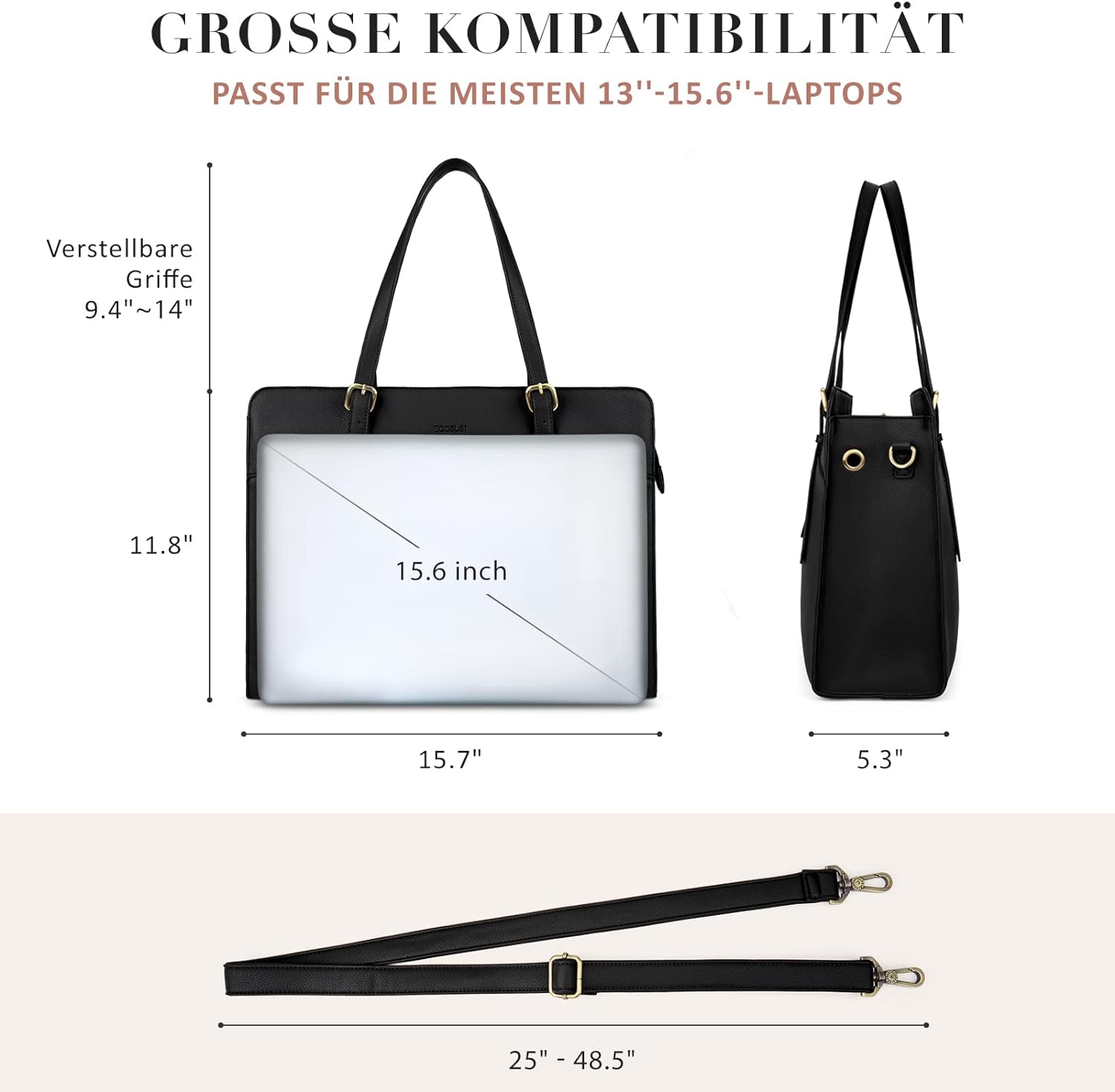 - Verstellbarer Schultergurt: Mit verstellbarem Griff und verstellbarem und abnehmbarem Schultergurt, Kann als Shopper, Aktentasche, Laptoptasche und Schultertaschen für Büro.