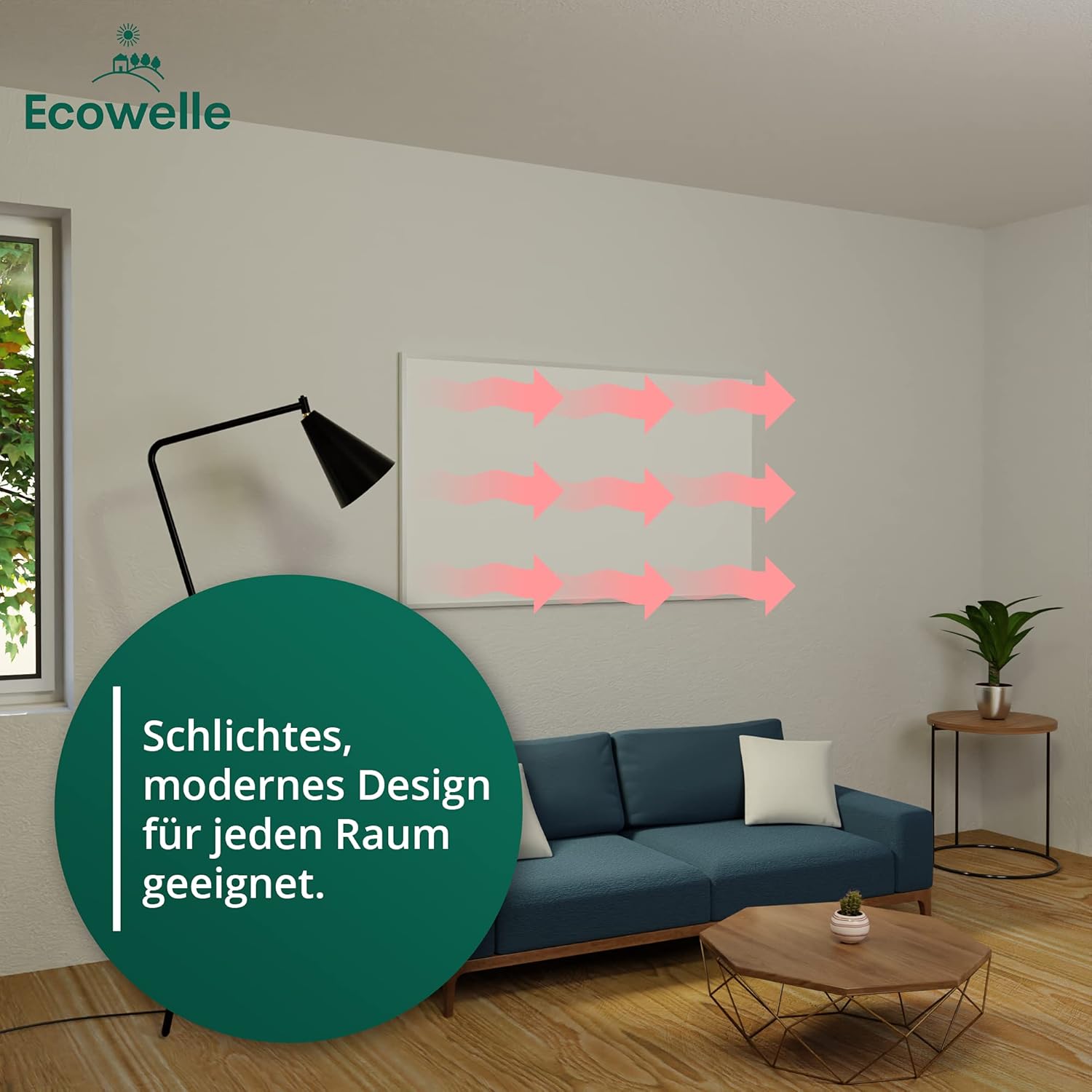 - MADE IN GERMANY: Ecowelle lieferte seit 2015 bereits weit über 50.000 Elektroheizungen an zufriedene Kunden aus. Profitieren Sie von unserer Erfahrung bei der Herstellung von hochwertigen Wandheizpaneelen. Unsere Infrarotheizplatten sind schnell und