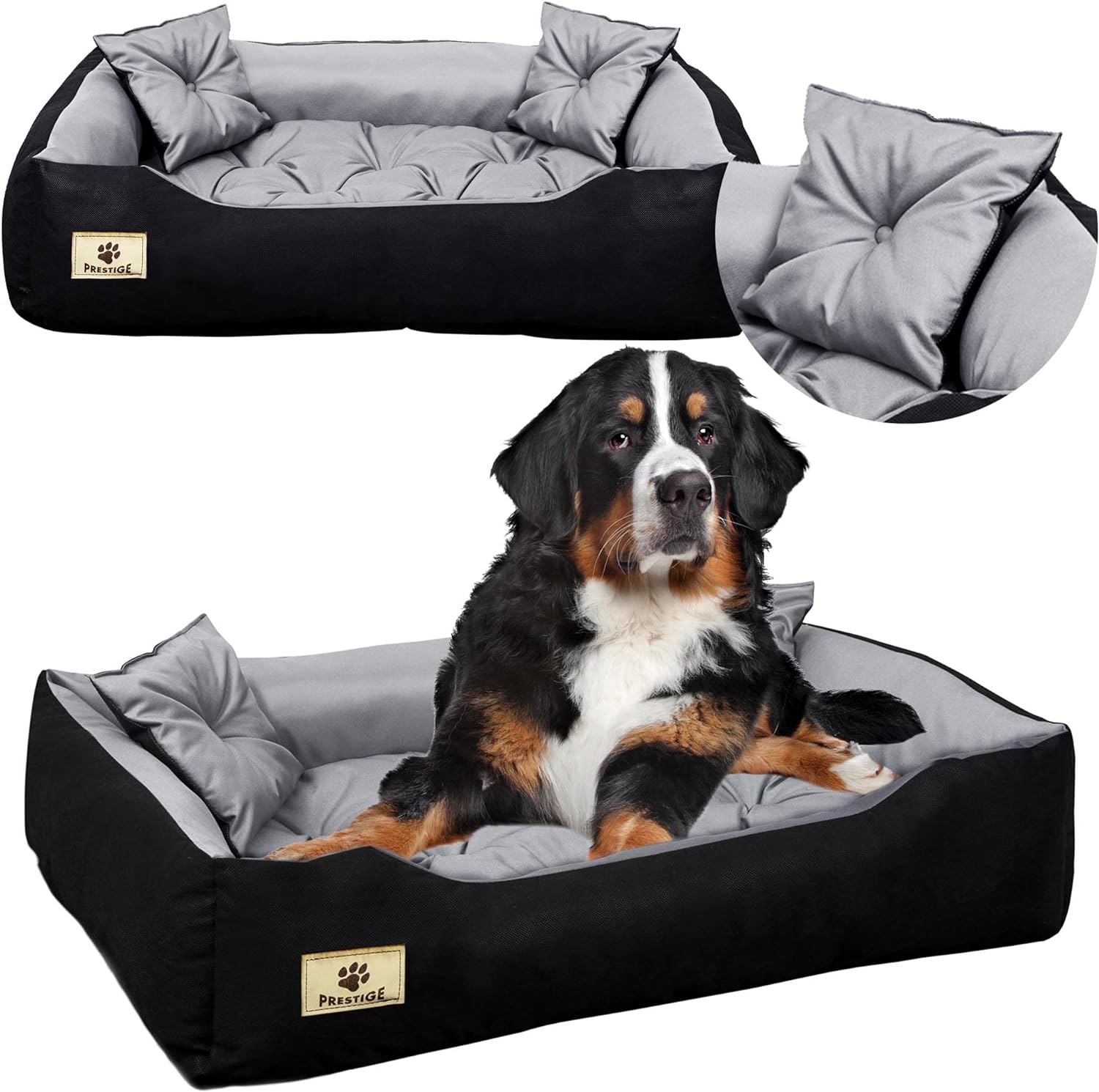 - Aussenmass des Bettes: 130 x 105 cm | Innenmass des Bettes: 115 x 90 cm | Höhe der Seiten vom Boden gemessen: 20 cm | Dicke des Kissens, auf dem der Hund liegt: 10-12 cm