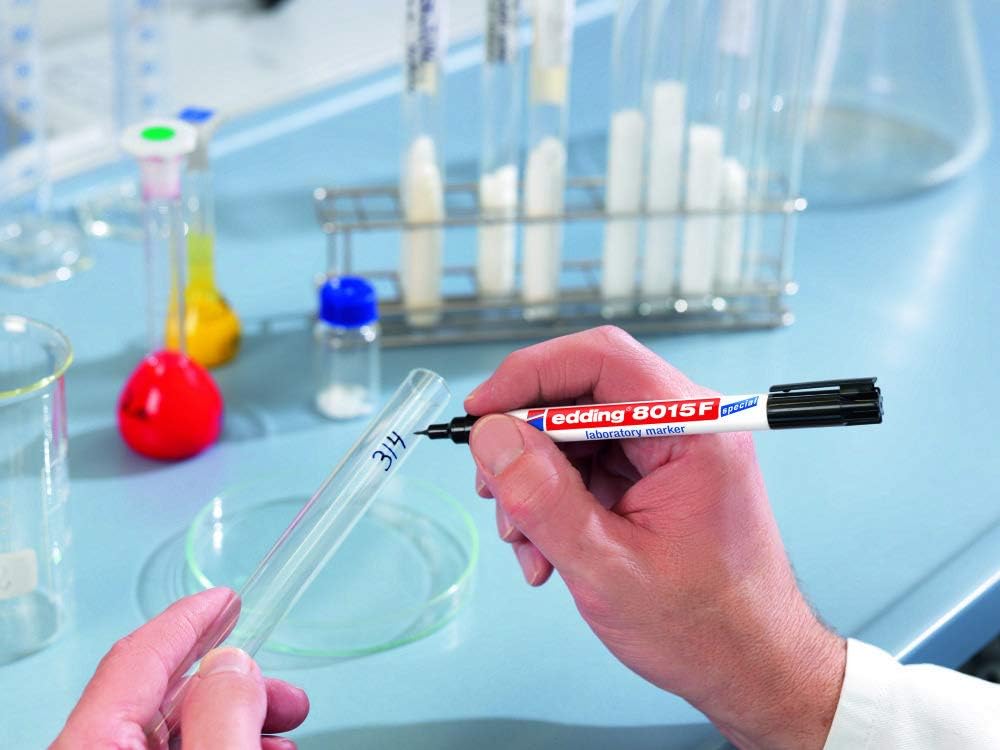 - Labormarkierer zum Markieren und Beschriften von glatten und transparenten Oberflächen wie Objektgläser, Proberohre, Petri- und Laborschalen