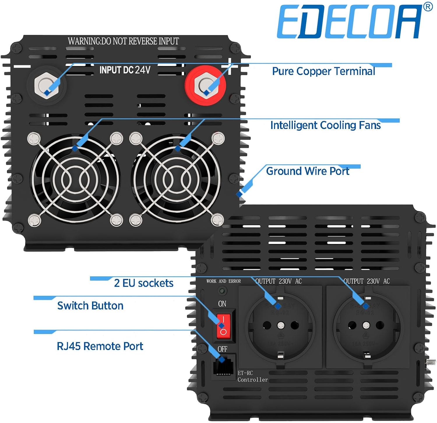 - Hochtechnologie: Der 24v 230v Spannungswandler verfügt über das SPWM-System, das Wechselrichterunterbrechungen, das Softstart-System und den automatischen Start reduziert und die Wiederherstellungszeiten verkürzt und optimiert. Der 1500W