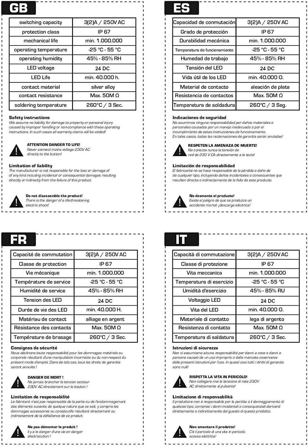 - 10-Pin - 2-poliger Taster (kann zwei getrennte Stromkreise schalten), max 250 V AC / 3A