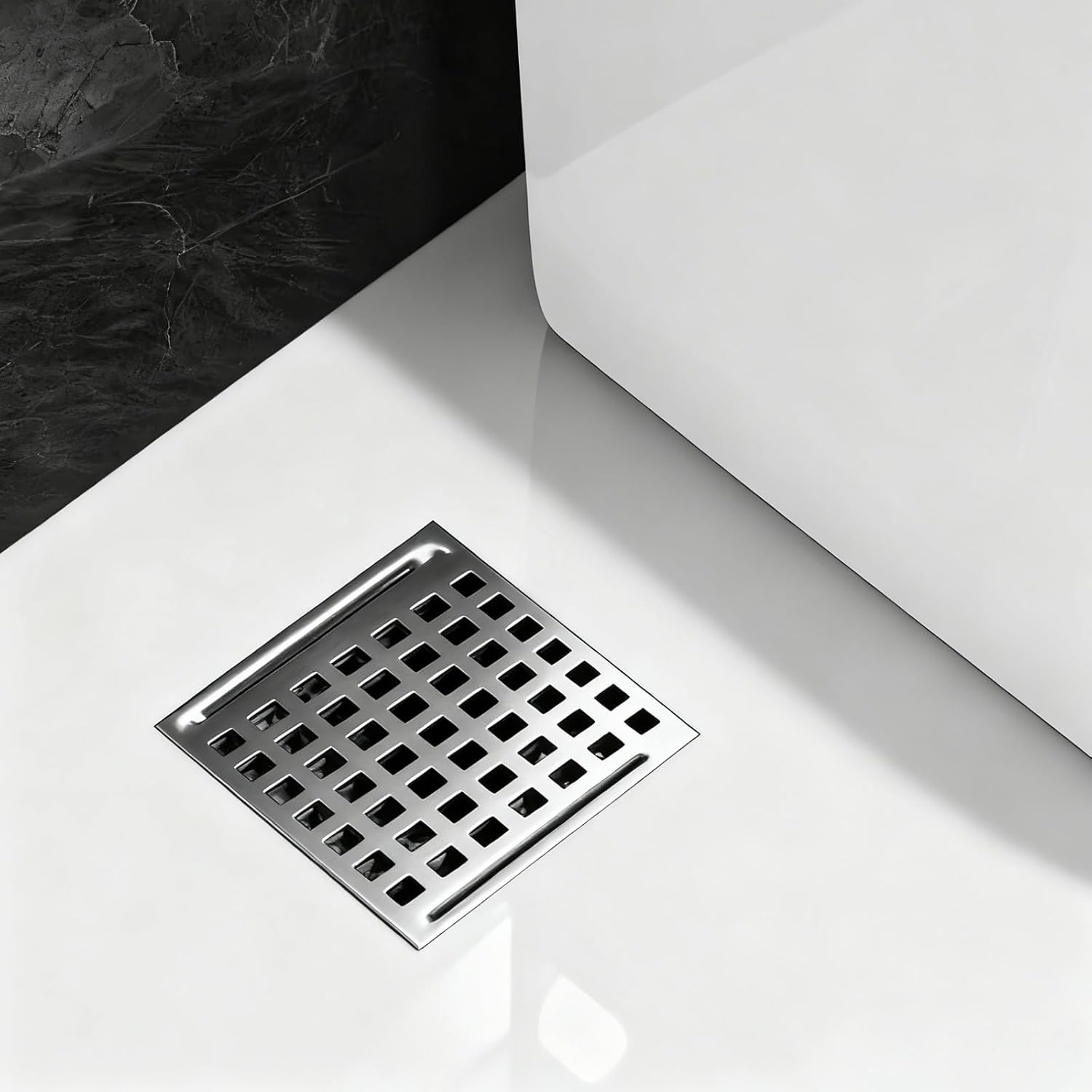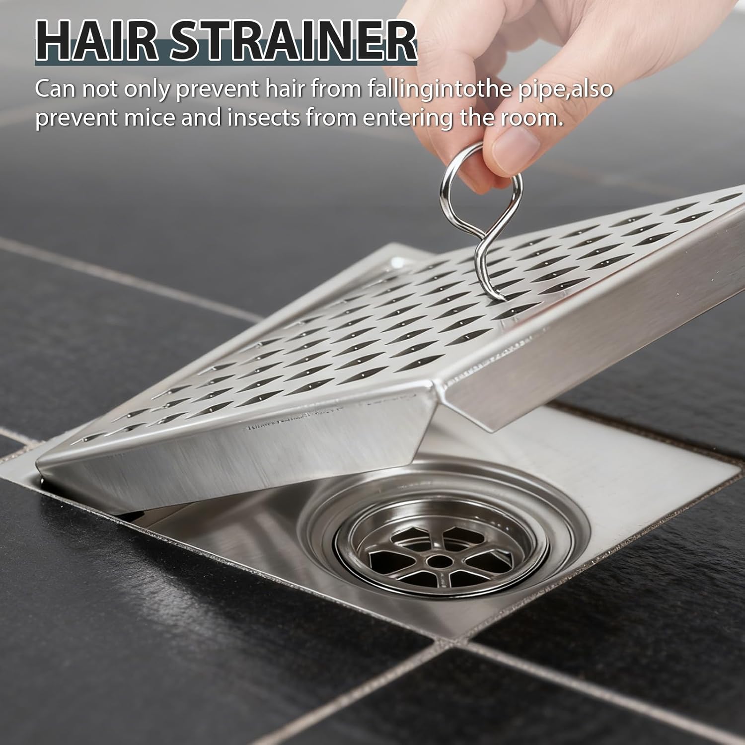 - DOPPELTER FILTER: Ein Filter ist ein Duschablaufgitter mit gitterartigen Rillen, die Löcher sind kleiner als die Ringe und fangen Haare auf. Der andere Filter ist ein Haarsieb aus Edelstahl, das verhindert, dass Haare und andere Ablagerungen in den