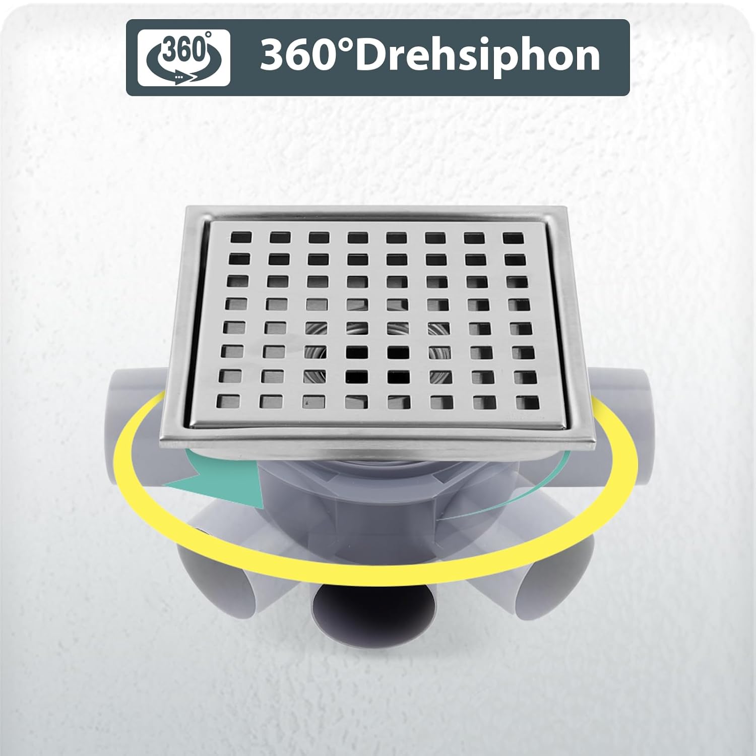 - EINFACHE INSTALLATION: Einfache Installation ohne professionelle Hilfe. Dieser Duschablauf verfügt über einen abnehmbaren, um 360° drehbaren Siphonschlauch und einen abnehmbaren Ablaufdeckel. Der integrierte Filter lässt sich mithilfe eines