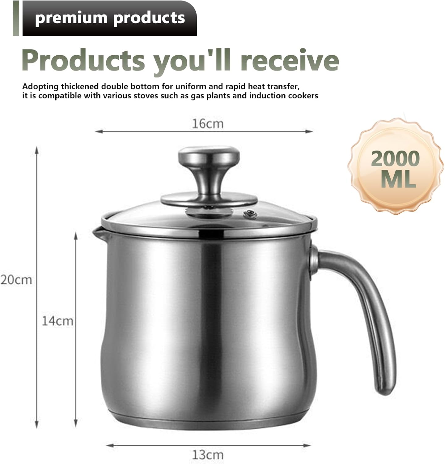 - Hochwertiges Material:Dieser Edelstahl Milchtopf Mit Deckel besteht aus robustem, lebensmittelechtem 304 Edelstahl und überzeugt durch eine erstklassige Glasabdeckung. Die dreischichtige, dicke Unterseite sorgt für eine gleichmässige Hitzeverteilung