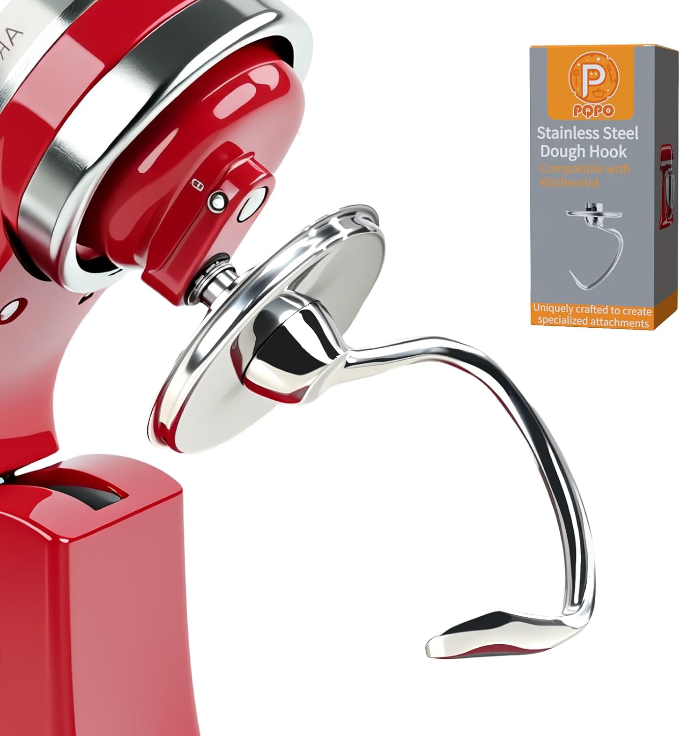- 4.5-5 Quart Edelstahl Teighakenaufsatz - Edelstahl Teighakenaufsatz für Kitchen Aid Kipp Kopf Standmixer. Grossartiger Kitchen Aid Mixer Aufsatz.