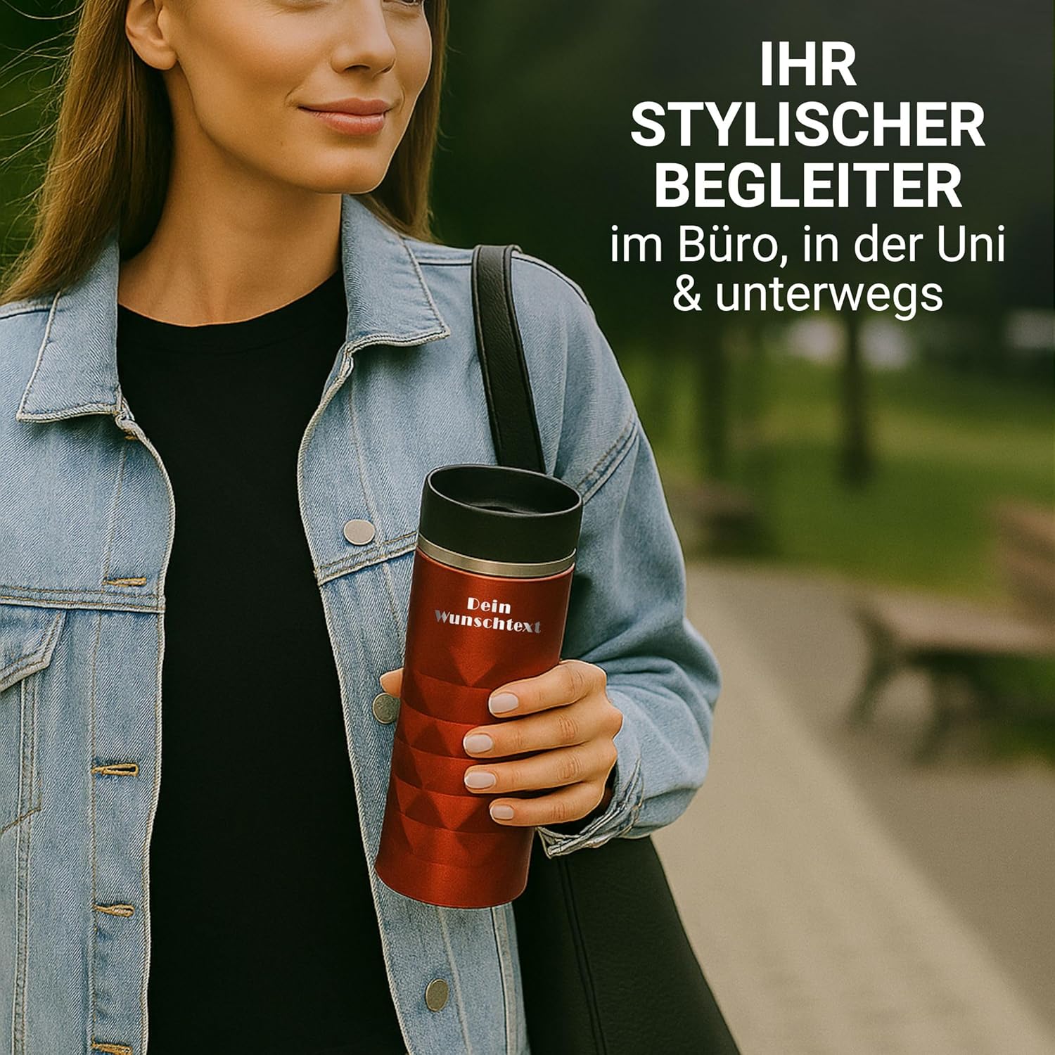 - THERMOBECHER INDIVIDUALISIEREN: Gönn dir deinen morgendlichen Kaffee oder Tee aus deinem ganz persönlichen Thermobecher! Mit der kostenlosen Gravur machst du aus dem Isolierbecher ein rundum gelungenes und originelles Geschenk, das in Erinnerung bleibt