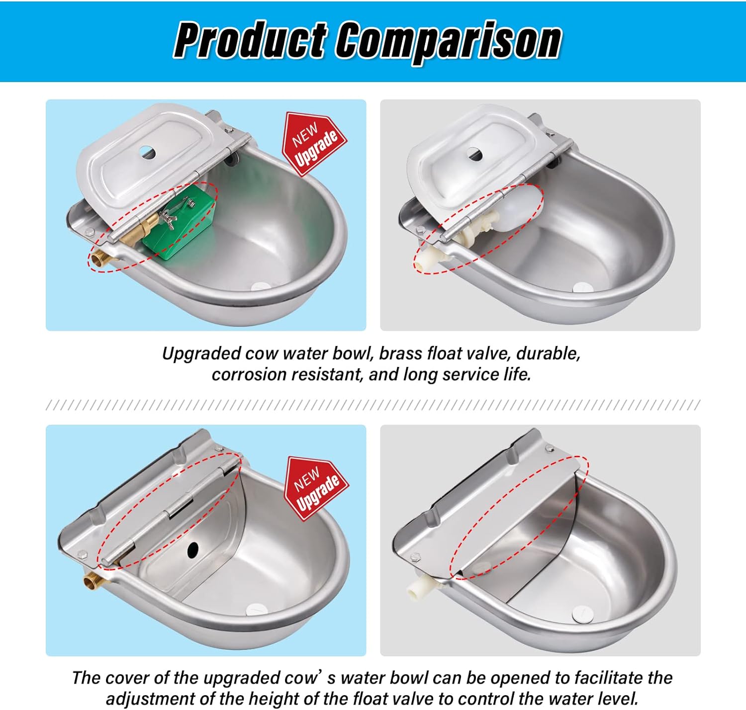 - EINFACHE BEDIENUNG: Der Viehtrog hat 2 Schraubenbefestigungslöcher auf der Rückseite, einfach zu befestigen; Sie können den Wasserstand durch Drehen der Flügelmutter aus Metall oder des Schwimmers entsprechend den Bedürfnissen des Wasserstands