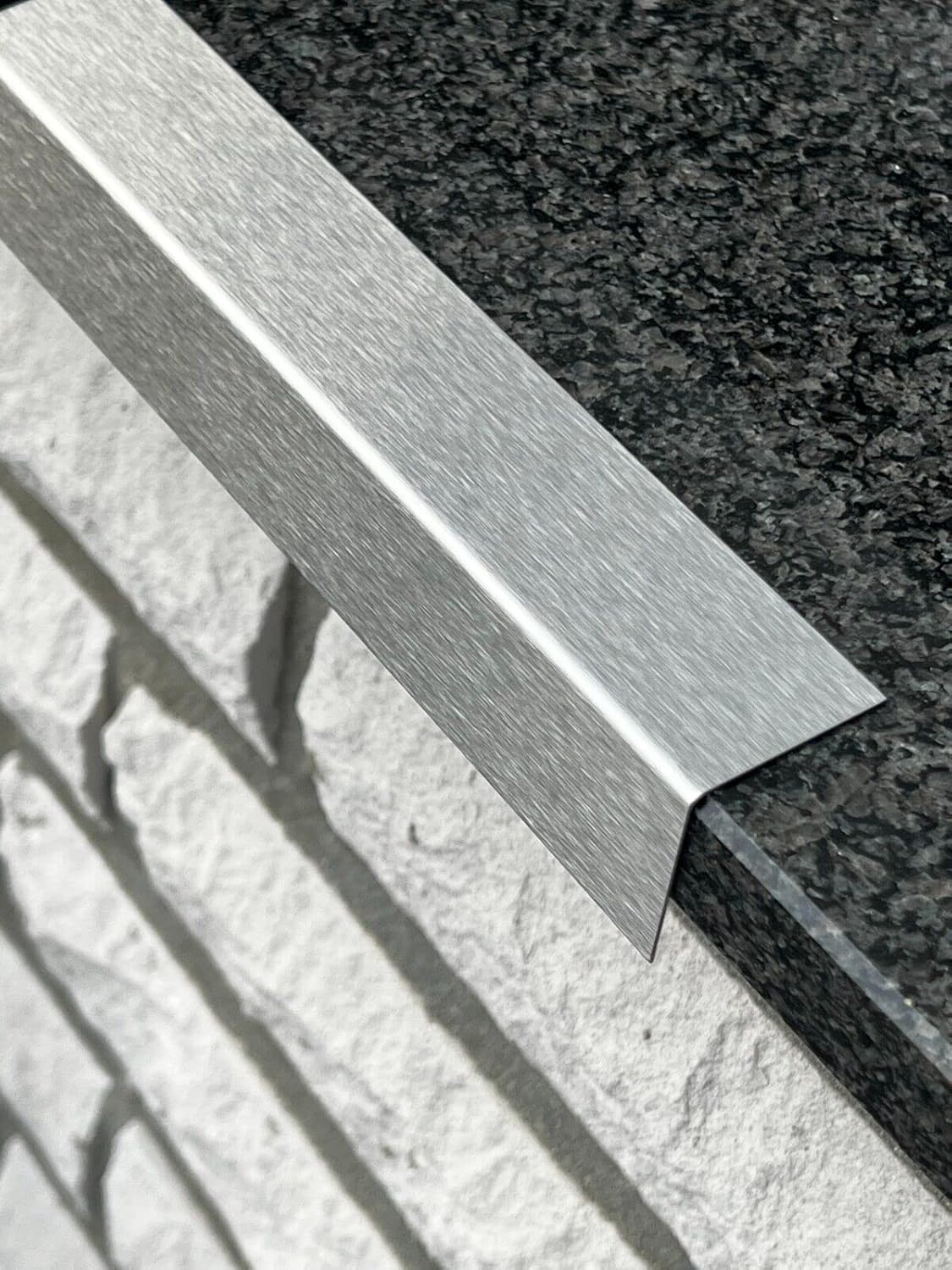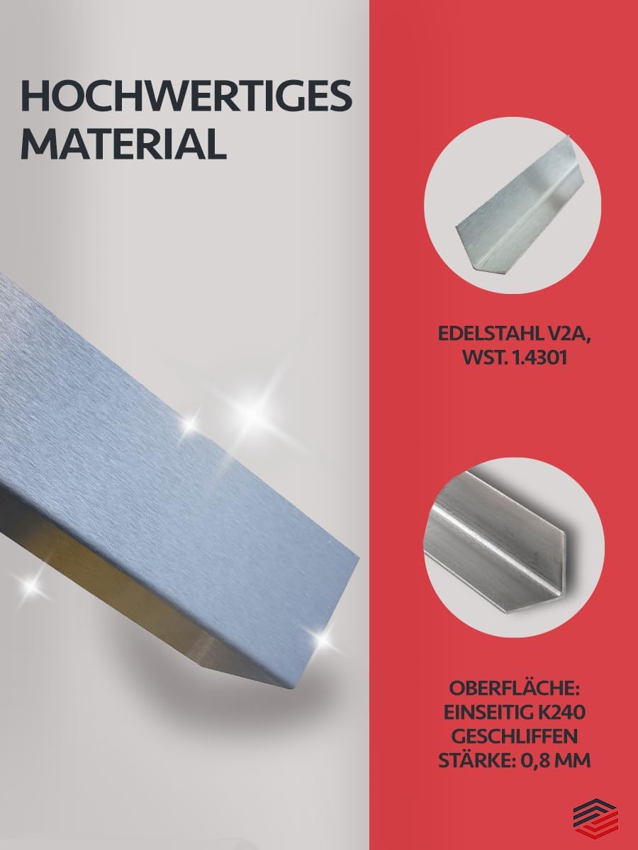 - Ein 90 Grad Winkelprofil, Edelstahl k240 geschliffen 0,8 mm stark