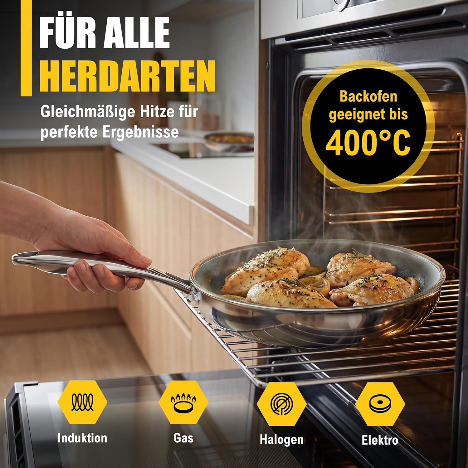 - Hitzeresistent: Ofenfest bis 400 °C – ideal auch für Schmoren und Flambieren.