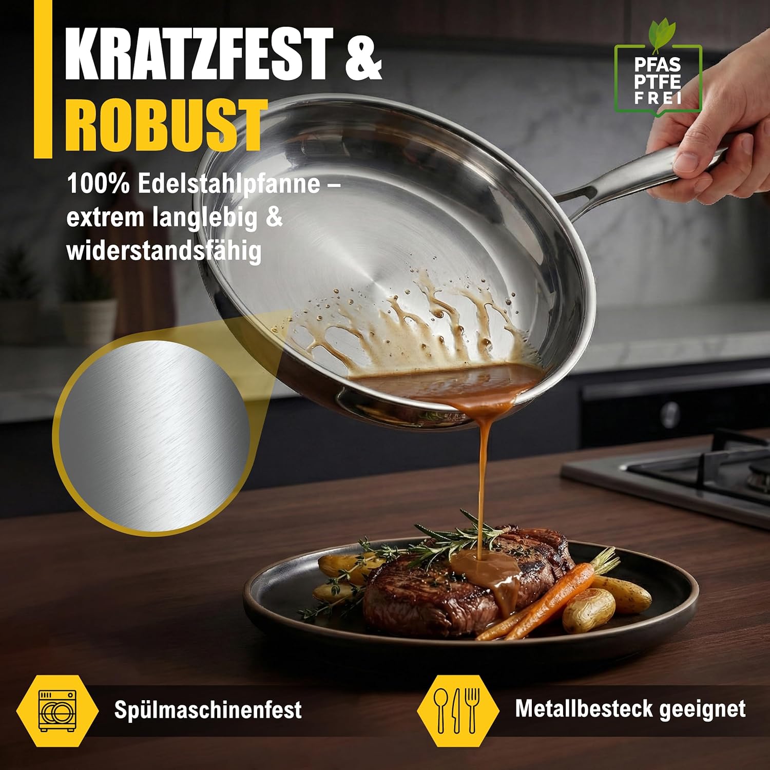 - Perfekte Röstaromen: Steaks, Bratkartoffeln & Gemüse gelingen knusprig und aromatisch.