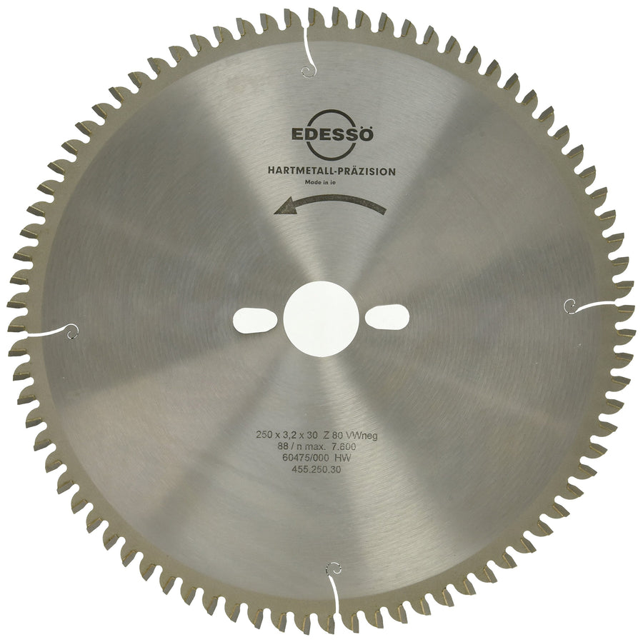 Edessö 45525030 HM-Kreissägeblatt Präzision-Spezial 2 KNL HW, Z=80 W neg, 250 x 3,2/2,2 x 30 mm, Sil