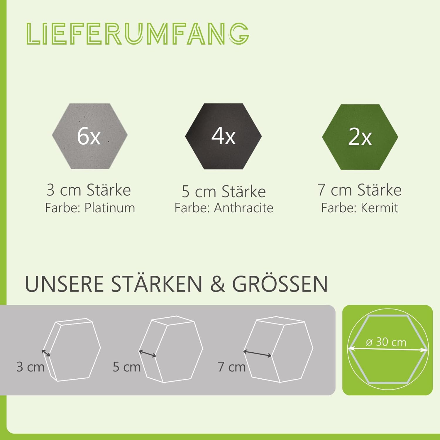 Variante: Ø 30 cm 6x Platinum + 4x Anthracite + 2x Kermit