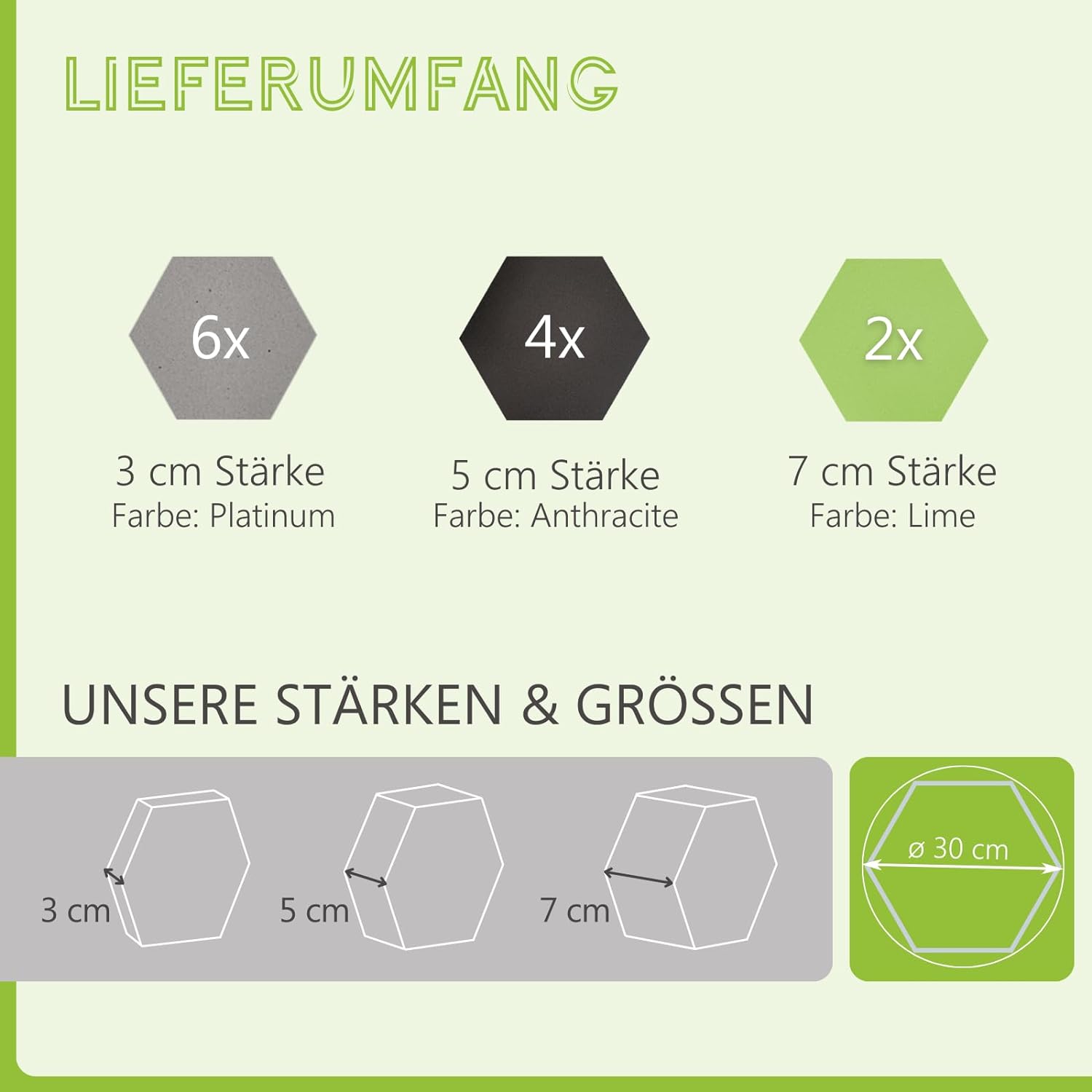 Variante: Ø 30 cm 6x Platinum + 4x Anthracite + 2x Lime