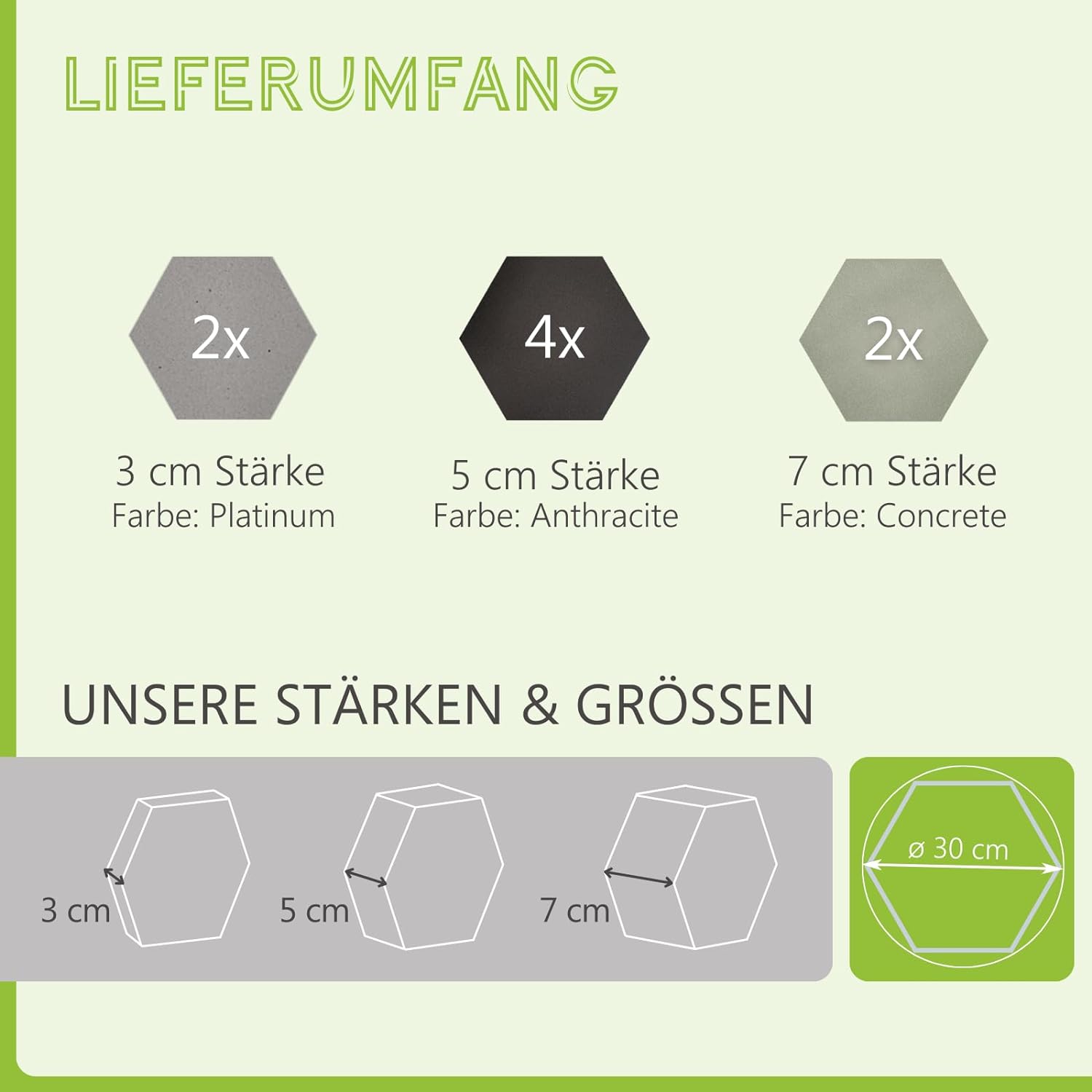 Variante: Ø 30 cm 2x Platinum + 4x Anthracite + 2x Concrete