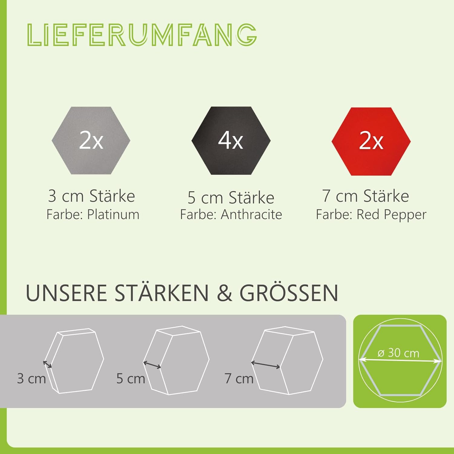 Variante: Ø 30 cm 2x Platinum + 4x Anthracite + 2x Red Pepper