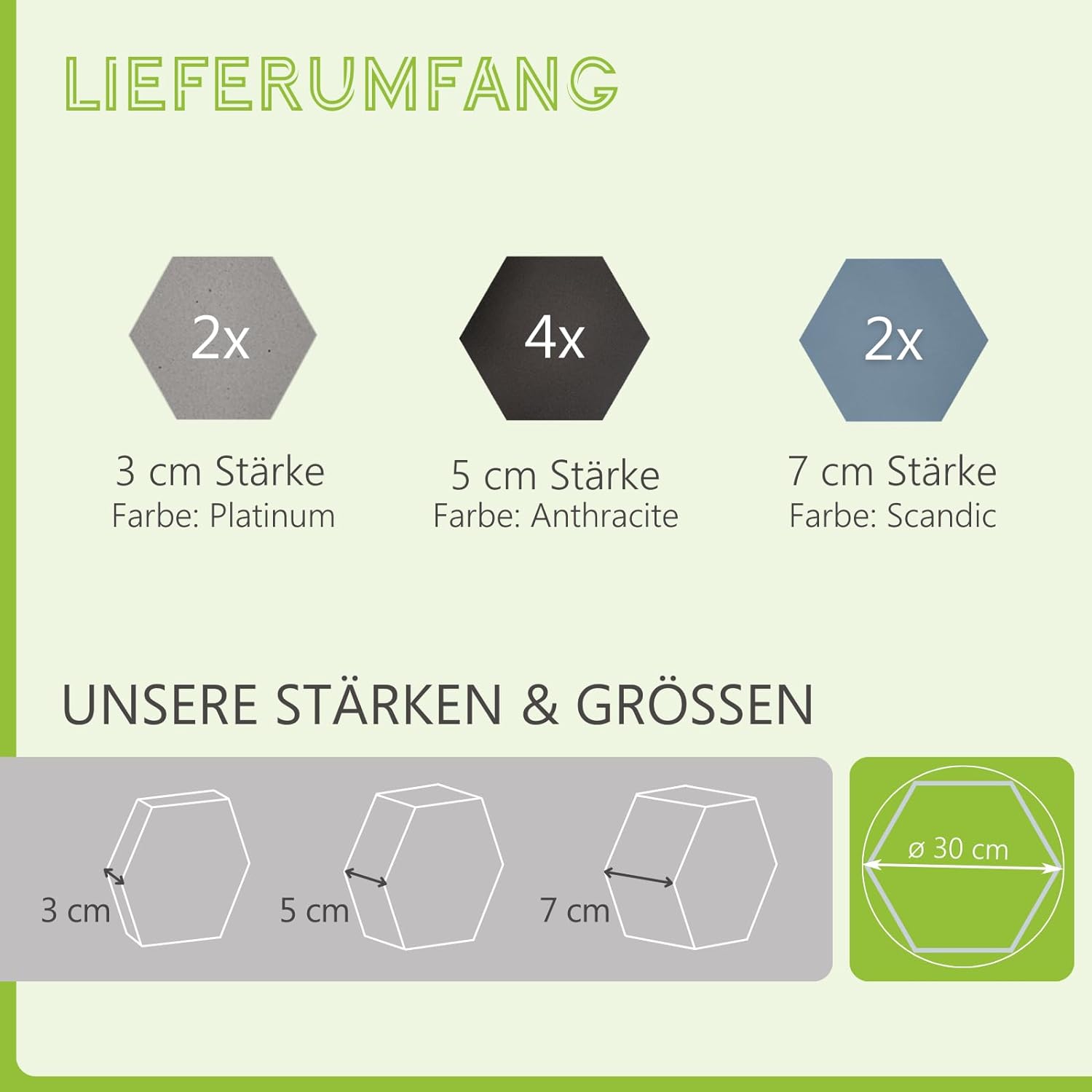 Variante: Ø 30 cm 2x Platinum + 4x Anthracite + 2x Scandic