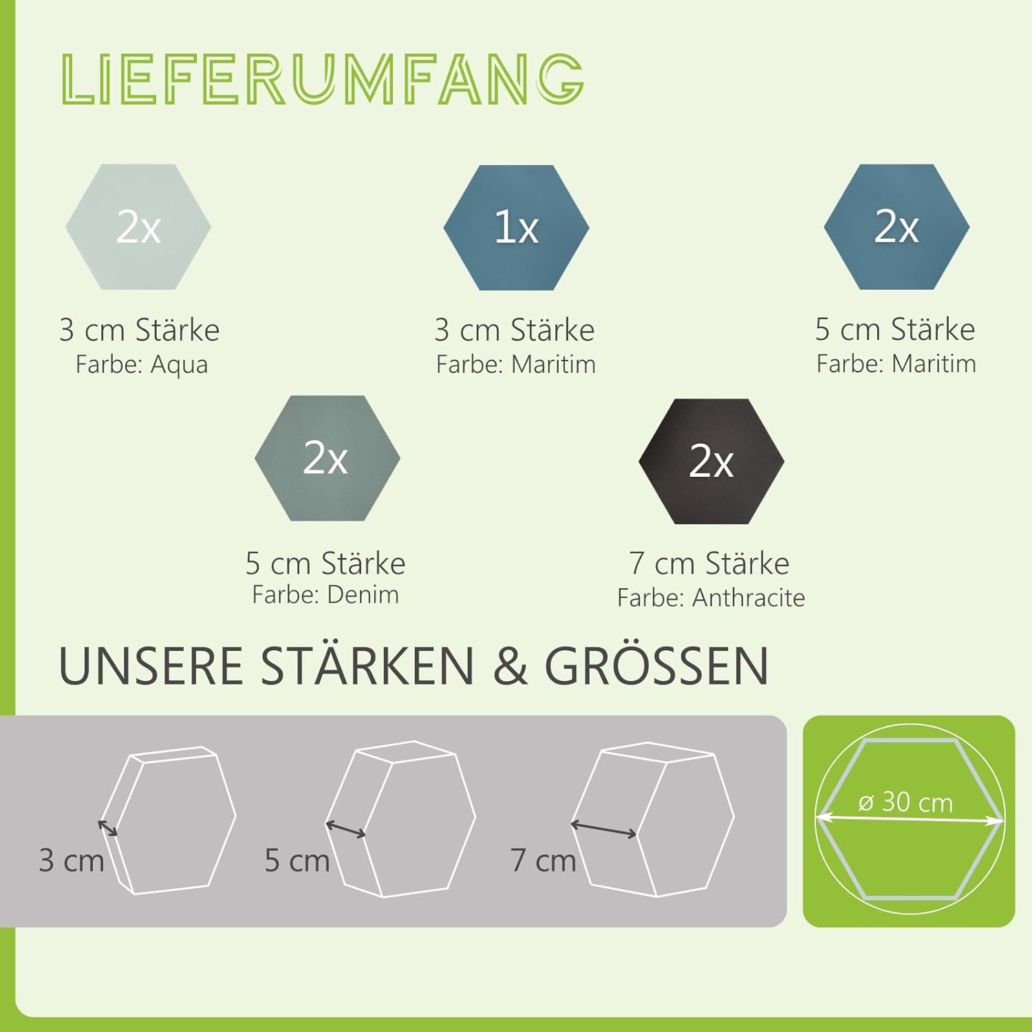 Variante: Ø 30 cm / 9 2x Aqua + 2x Denim + 2x Anthracite + 3x Maritim