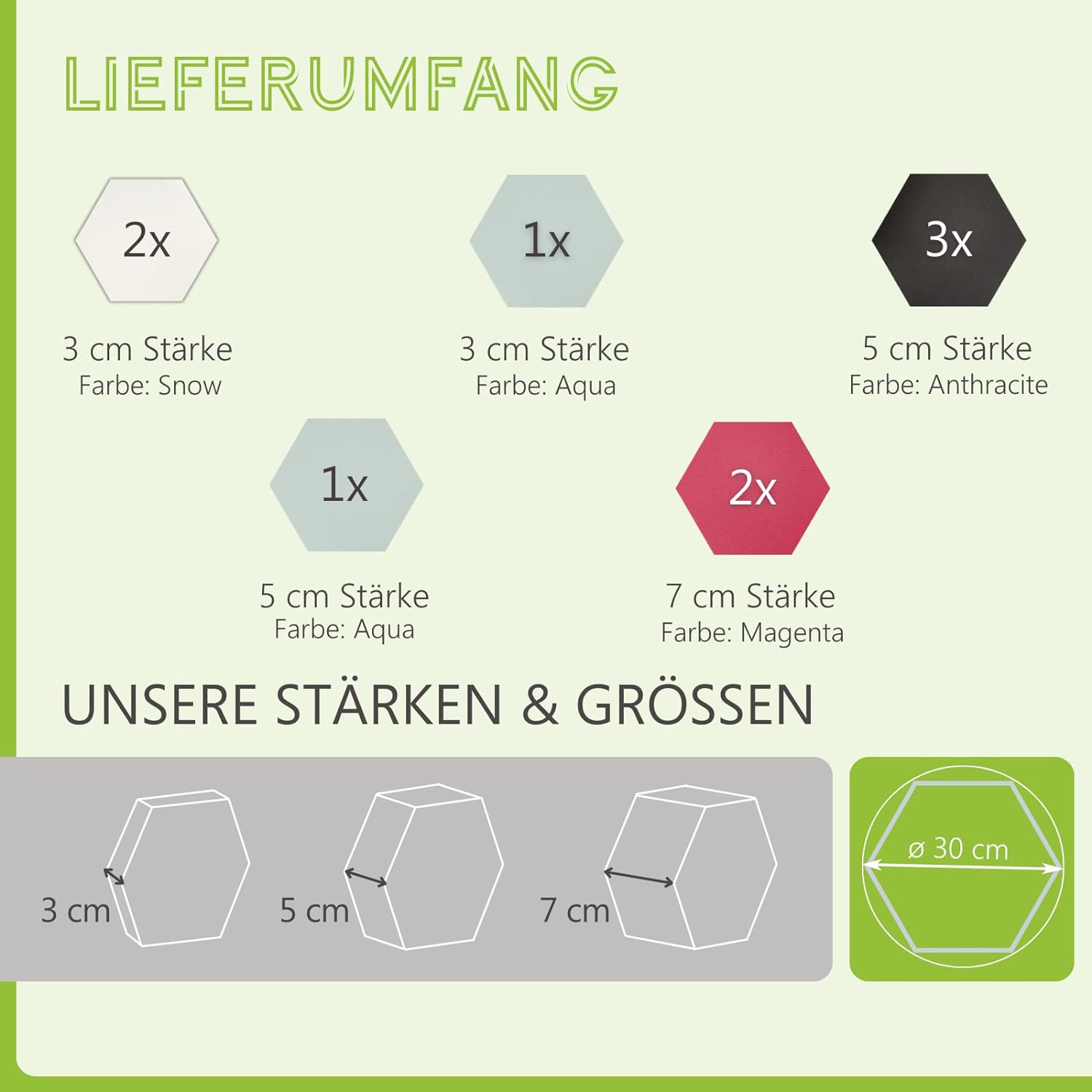 Variante: 2x Snow + 3x Anthracite + 2x Magenta + 2x Aqua