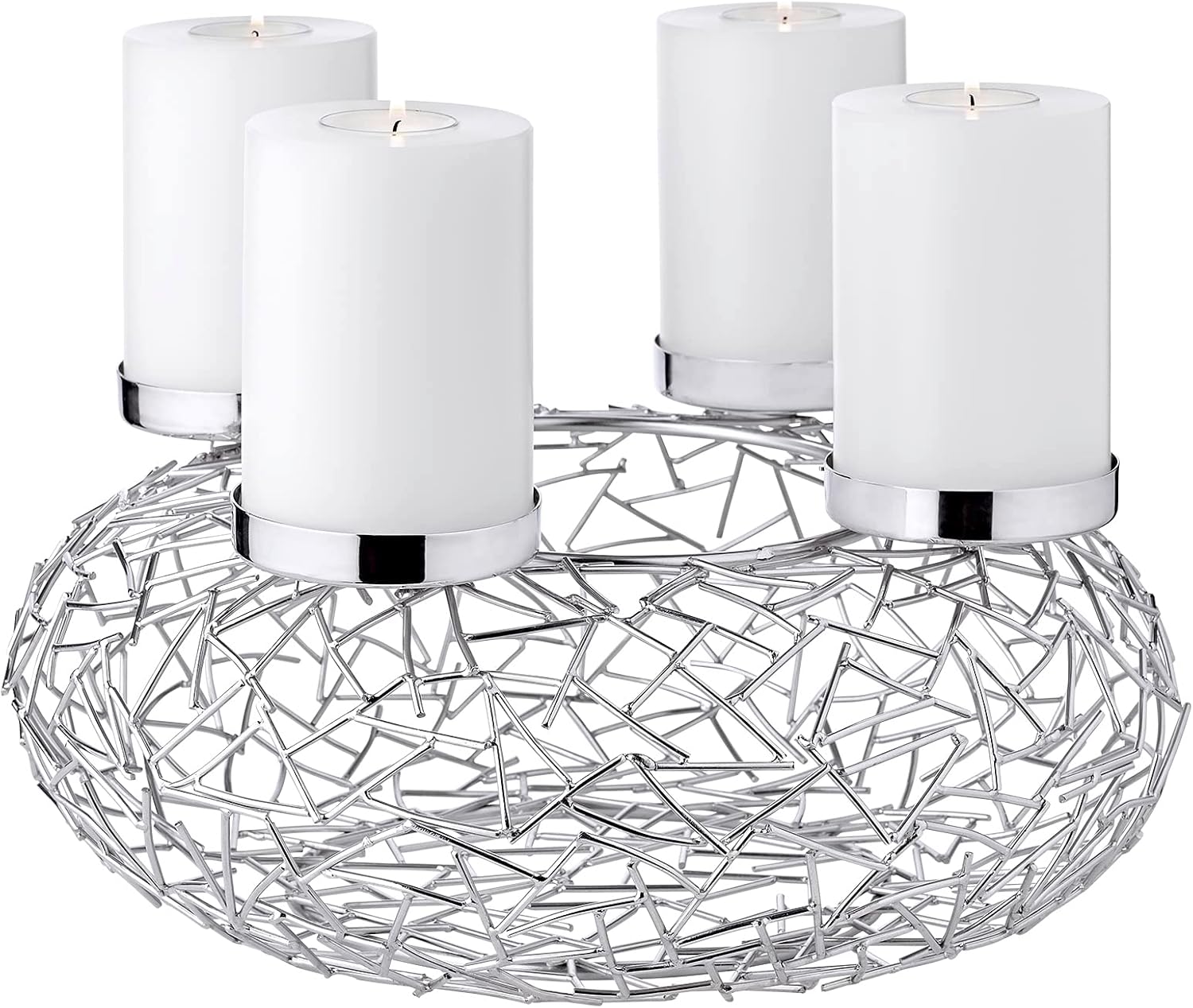 - โ ๐๐๐ก๐๐๐๐๐๐: Der Milano Deko-Kranz hat einen Durchmesser von 34 cm und eine Hรถhe von 14 cm. Er besteht aus vernickeltem Edelstahl. Das hochwertige Material schafft eine Langlebigkeit des Kerzenhalters, sodass er auch