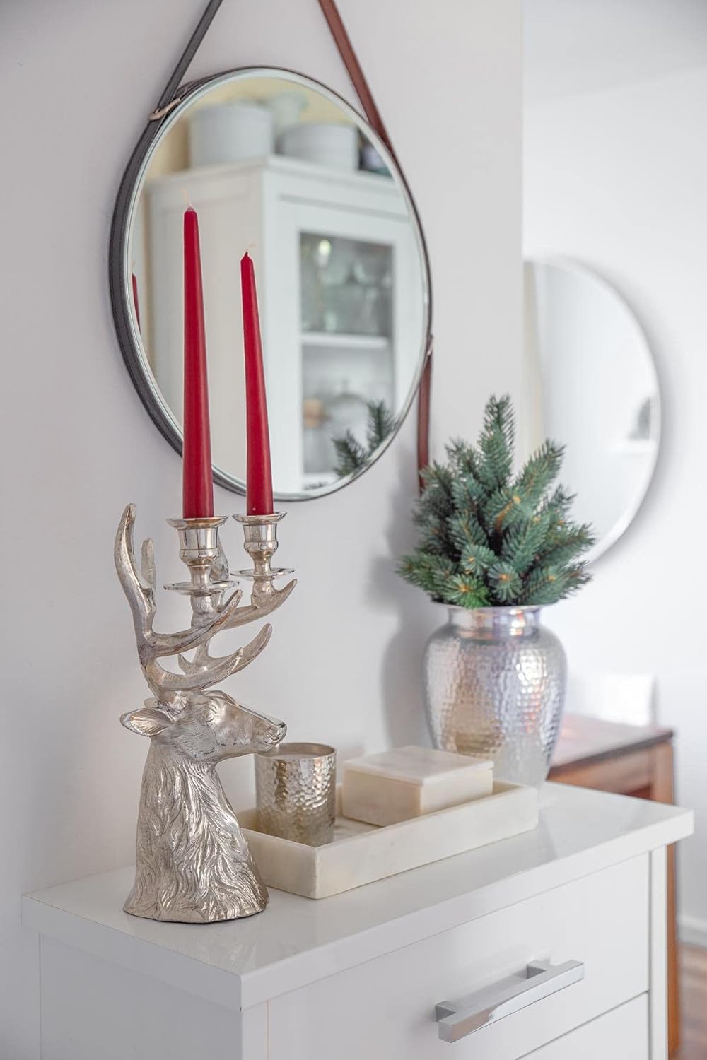 - ✔ 𝗞𝗢𝗠𝗕𝗜𝗡𝗜𝗘𝗥𝗙Ä𝗛𝗜𝗚: Auch ausserhalb der Weihnachtszeit ist der Kerzenleuchter ein schöner Hingucker in jedem heimischen Wohnrevier. Kombinieren Sie den Hirschkopf ganz einfach mit unseren klassischen Produkten,