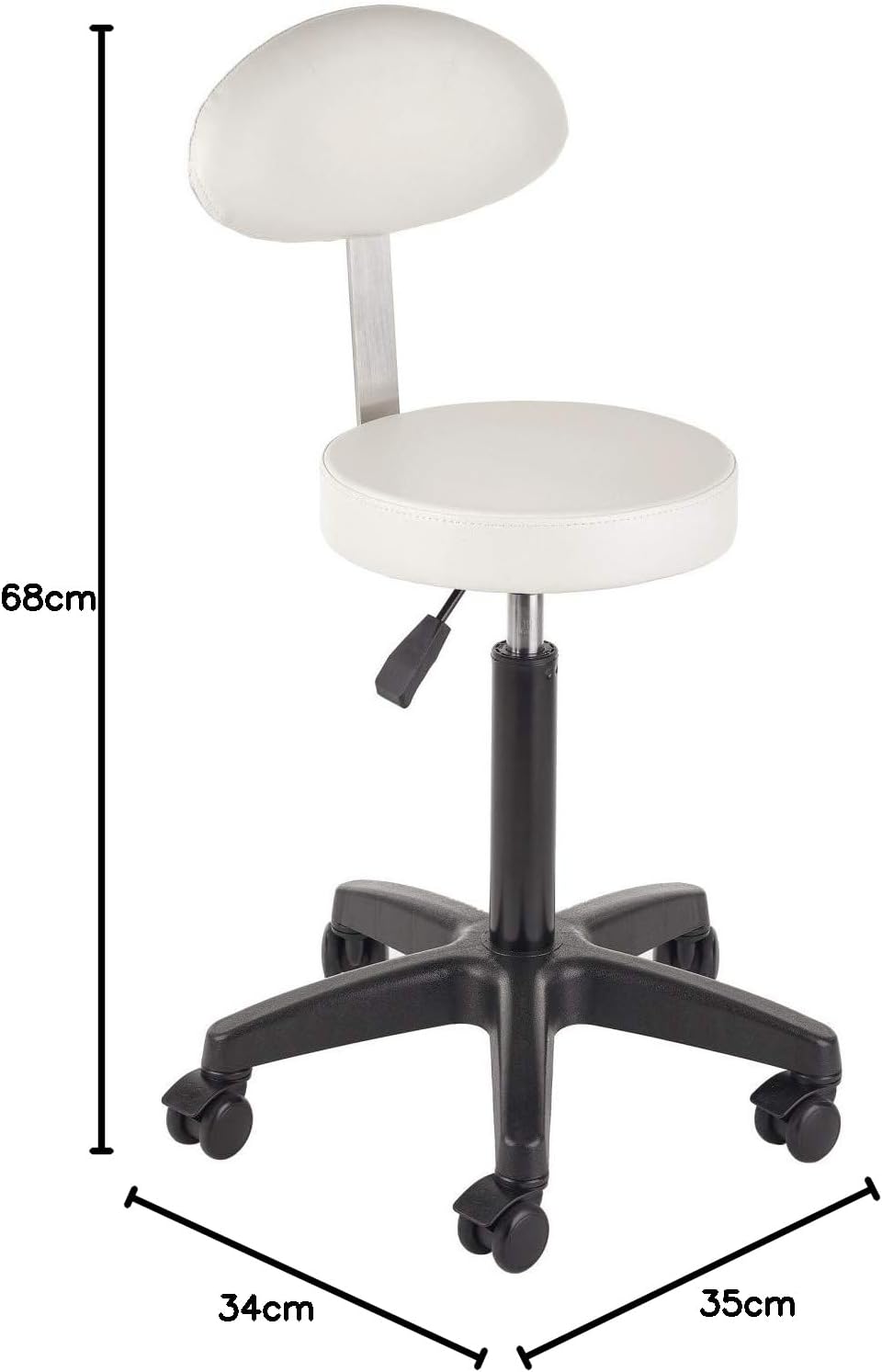 • Er hat einen 6 cm hohen runden Sitz und eine Tragfähigkeit von bis zu 110 kg