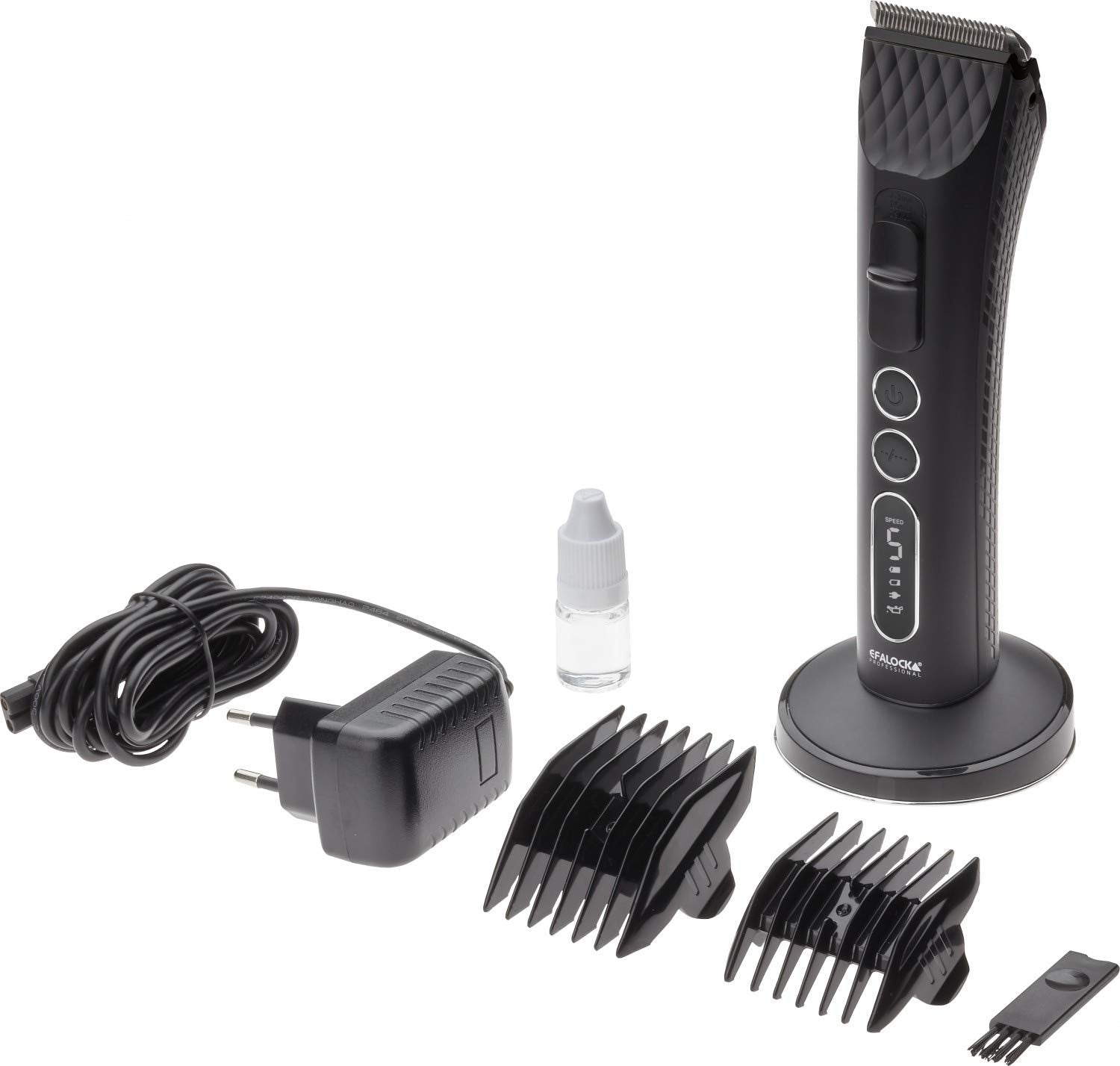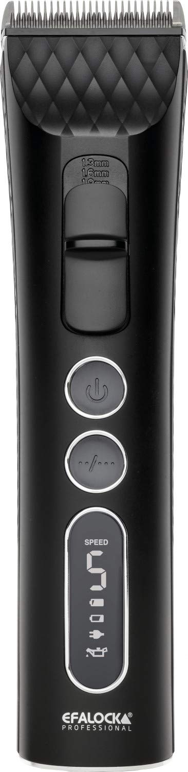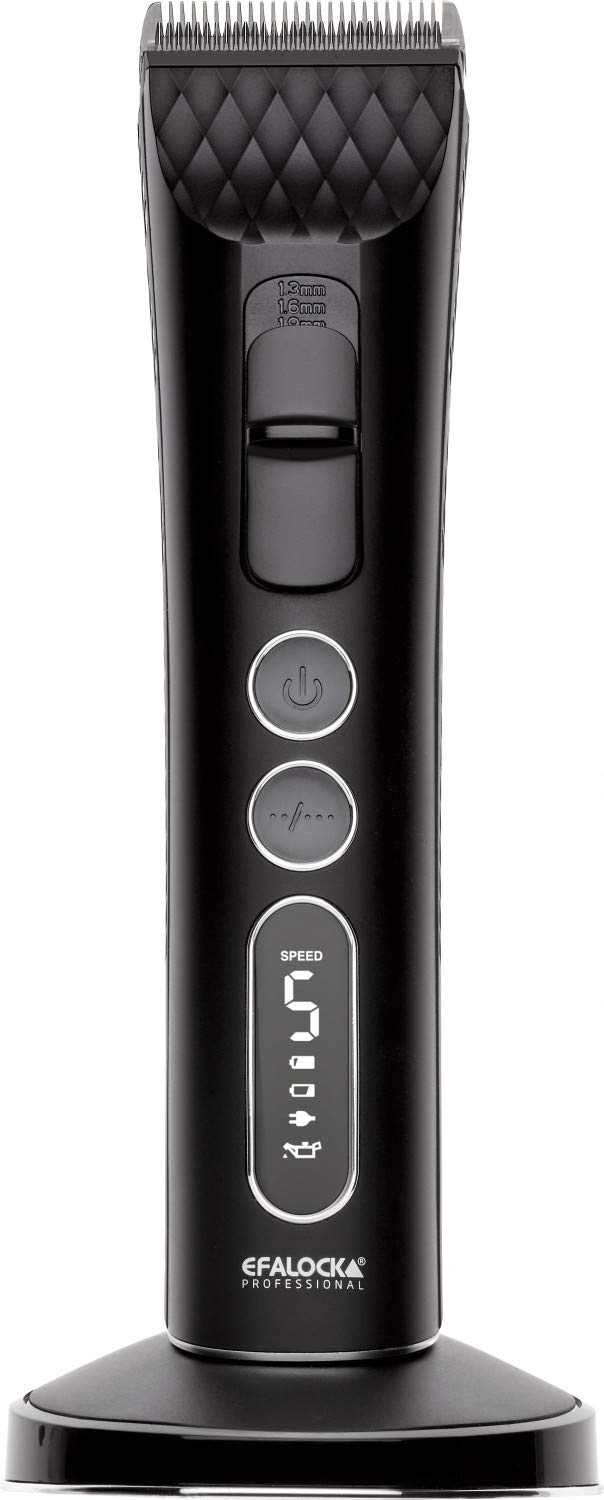PRODUKTBESCHREIBUNGEN Der Efalock NXC Pro Clipper st eine professionelle Haarschneidemaschine mit Netz-Akku-Betrieb. Die Maschine ist besonders vibrationsarm, durch innovative Shell-Technologie. Der Li-Ionen-Akku hat eine extralange Laufzeit von bis zu 6 Stunden. Die Cool Blade sorgt für minimale Wärmeentwicklung, während des Schneidens. Eigenschaften des Efalock NXC Pro Clipper * Akku: Betriebsdauer: bis zu 360 min. | Ladezeit: 180 min. * Motor: 5 Geschwindigkeitsstufen von 5000-7000 RPM, konstante Drehzahl unabhängig vom Ladungszustand * Schneidesatz: Titanschneidesatz mit Edelstahl-Messer, Schnellwechselsystem * Schneidekopfbreite: 45 mm * Schnittlängeneinstellung: 1,0; 1,3; 1,6 ;1,9 mm * Handhabung: ergonomisch, besonders laufruhig (