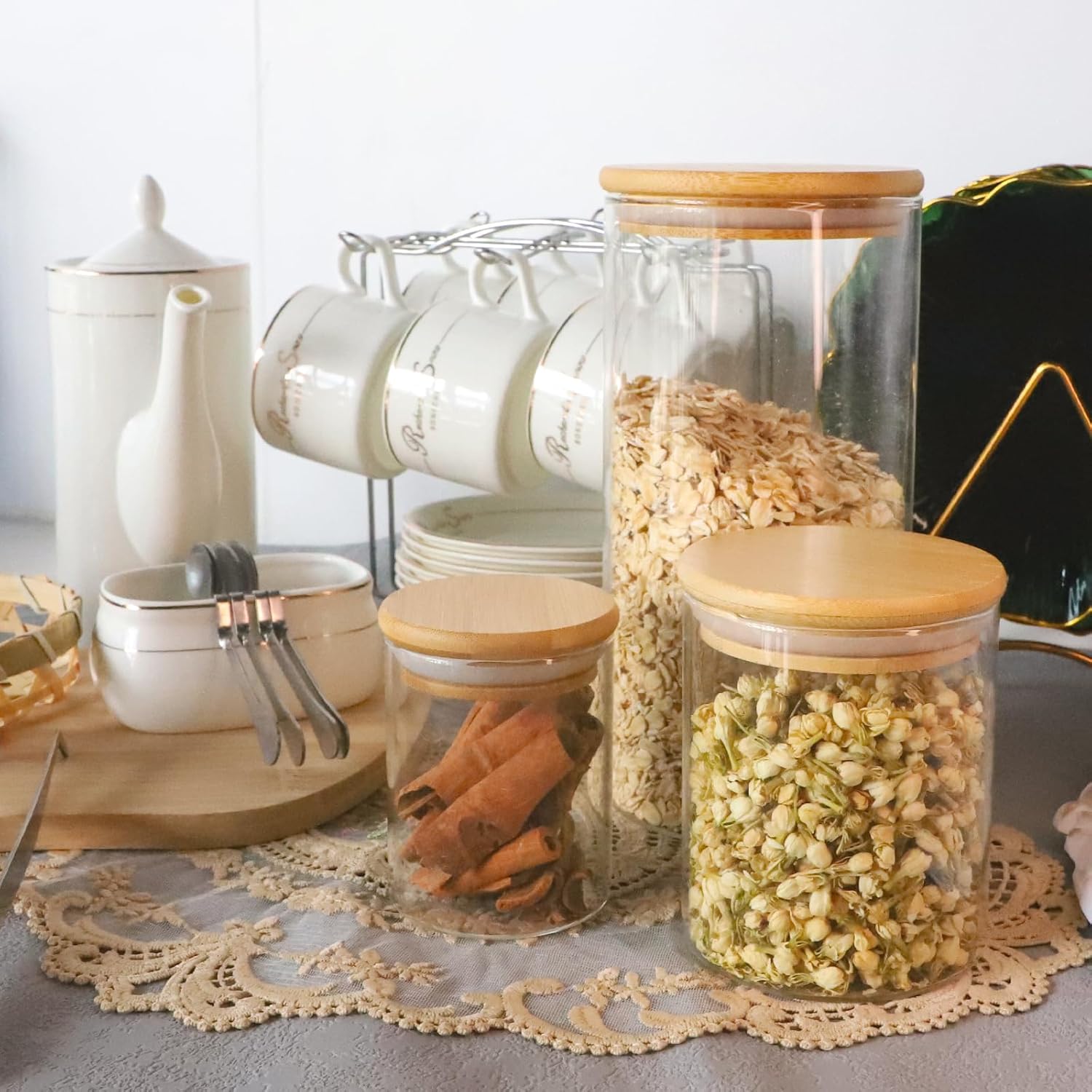 - 【Wiederverwendbarkeit】: Unsere Glaskrüge mit Bambusdeckel sind eine nachhaltige und wiederverwendbare Alternative zu Plastikverpackungen. Beachte, dass Vorratsgläser aus Glas zerbrechlich sind und mit Vorsicht platziert werden sollten.
