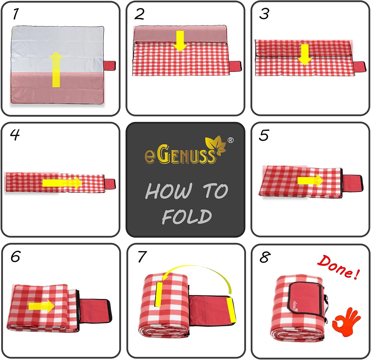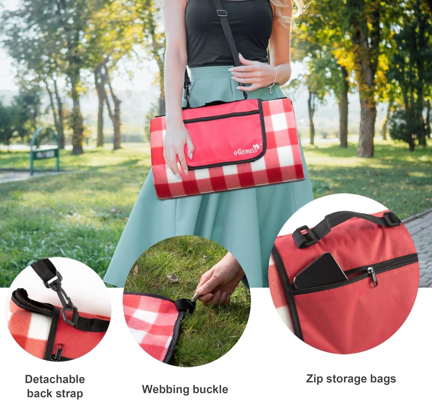 - ๐ ๐๐๐๐๐ร๐ - Picknick Decke mit eingenรคhtem Griff, anbringbarem Schulterriemen, Reissverschlusstasche fรผr Schlรผssel, Karten und Geld. Leicht zu tragen und einfach praktisch.