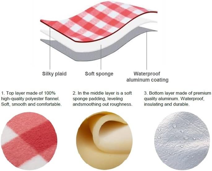 - ๐ ๐๐๐๐๐๐๐๐ - Die Picknickdecke besteht aus 3 Schichten: 1. obere Flanell Schicht, fรผhlt sich angenehm auf der Haut an, 2. zentraler Frotteekern, der Unebenheiten ausgleicht, 3. wasserdichte Aluminiummembran an der Unterseite.