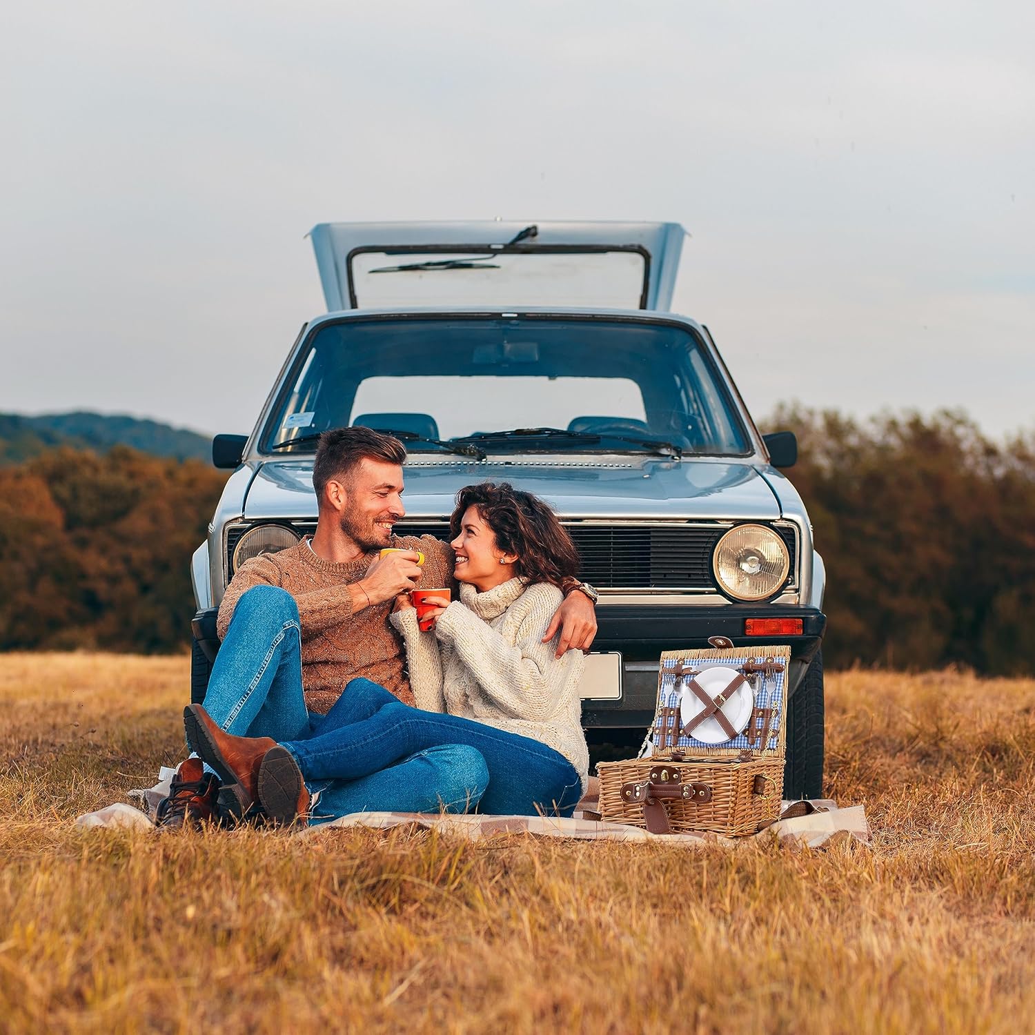 - 🥂 STILVOLLES DESIGN - Jeder Korb ist reine Handarbeit und sein schönes Design wird Sie verzaubern. Dank des grossen Kühlfachs können Sie genug Essen und Trinken einpacken. Perfekt als Geschenk oder für ein Familienpicknick. Alles zur Hand.