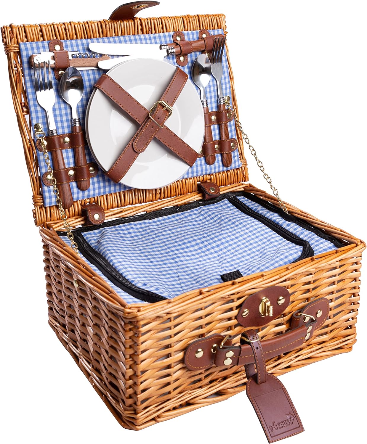 - 🥂 PICKNICKKORB - Der Korb für 2 Personen ist handgewebt aus Naturweide. Dank des Kühlfachs bleiben die Getränke und Essen gut gekühlt. Perfekt als Geschenk oder für ein Familienpicknick.
