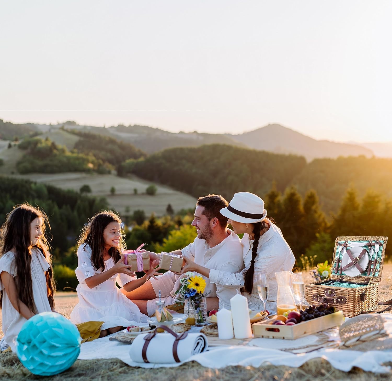 • 🥂 STILVOLLES DESIGN - Jeder Korb ist reine Handarbeit und sein schönes Design wird Sie verzaubern. Dank des grossen Kühlfachs können Sie genug Essen und Trinken einpacken. Perfekt als Geschenk oder für ein Familienpicknick. Alles zur Hand.