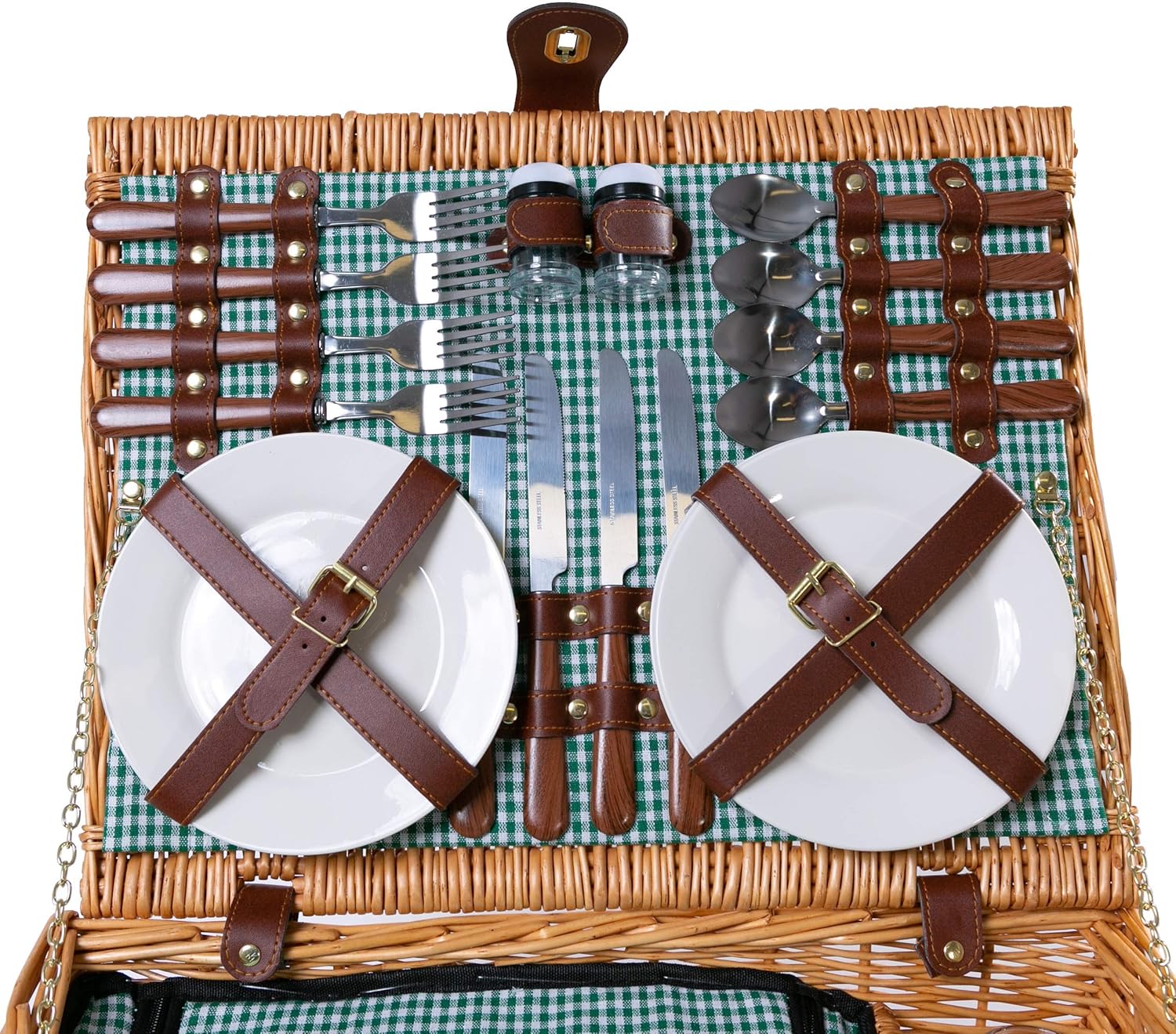 • 🥂 STILVOLLES DESIGN - Jeder Korb ist reine Handarbeit und sein schönes Design wird Sie verzaubern. Der Stoff hat ein grünes Gingham-Muster.
