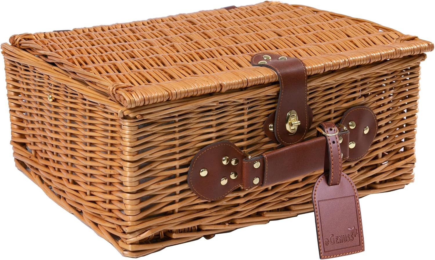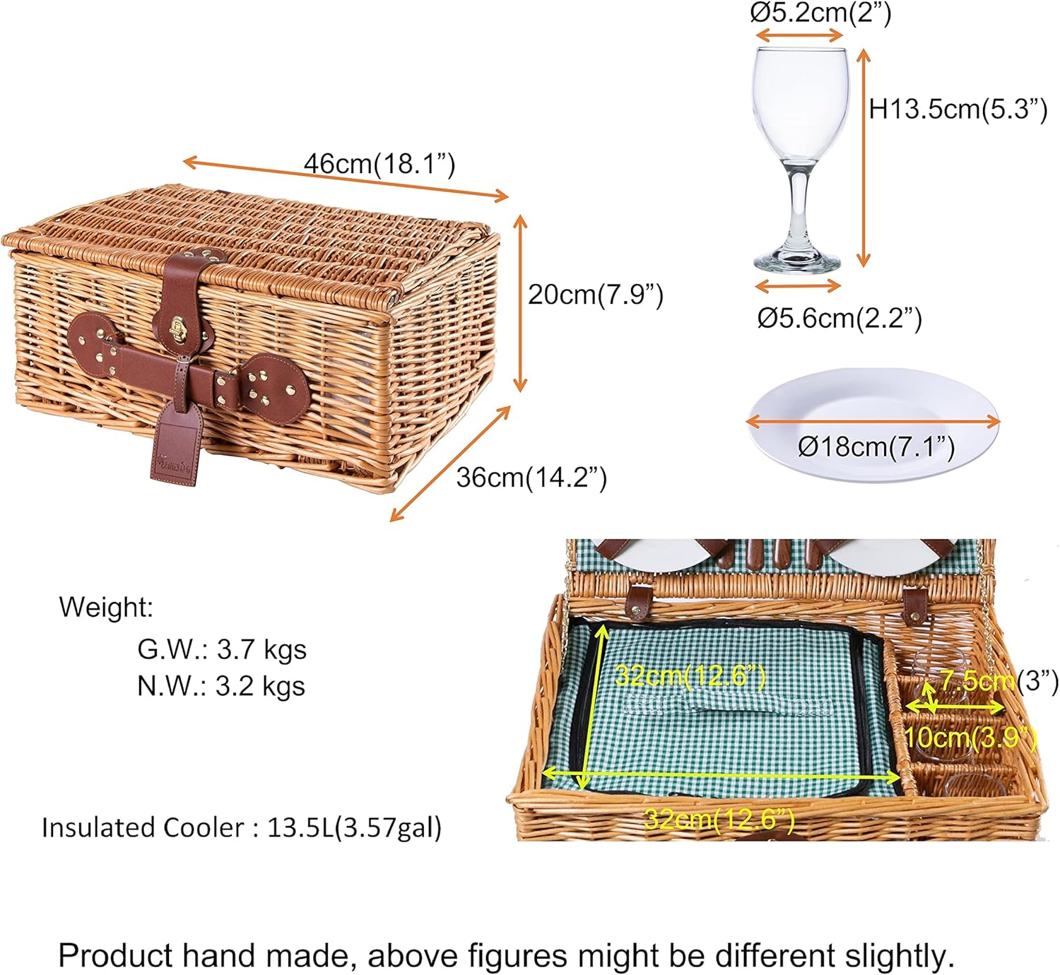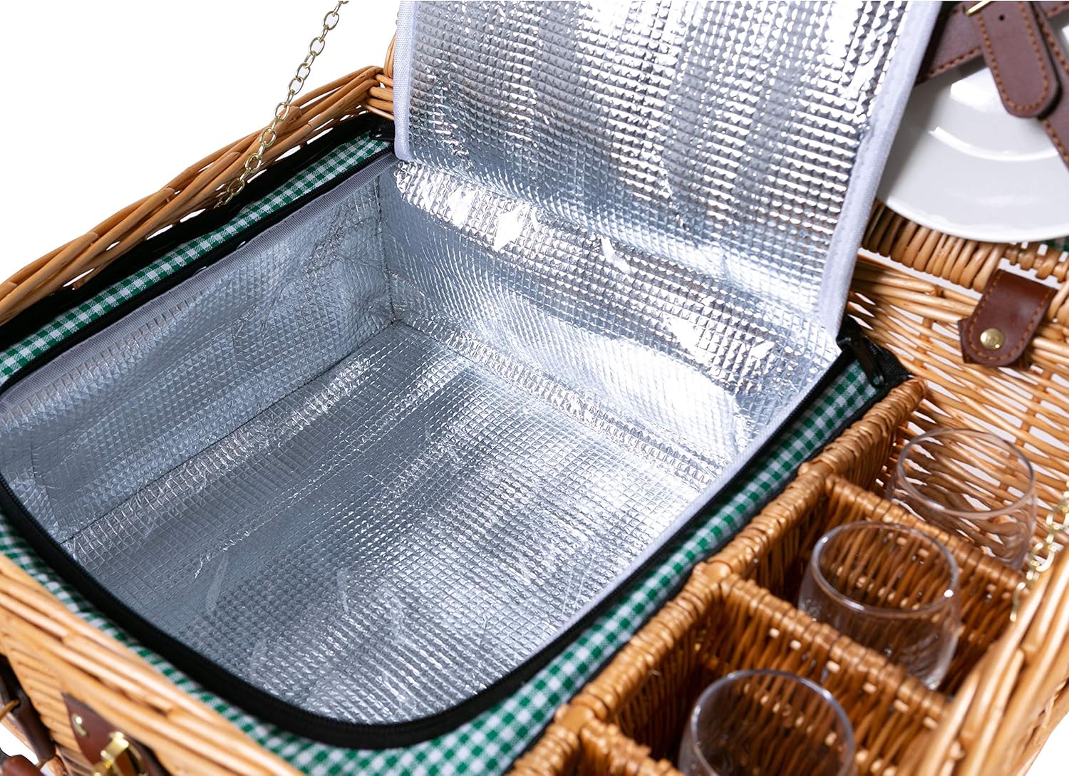 • 🥂 PICKNICKKORB - Der Korb für 4 Personen ist handgewebt aus Naturweide. Dank des grossen Kühlfachs können Sie genug Essen und Trinken einpacken. Perfekt als Geschenk oder für ein Familienpicknick.