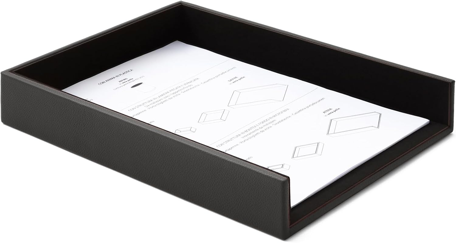- Ablagefächer aus echtem Leder. Die perfekte Ergänzung, um Ordnung auf dem Schreibtisch zu schaffen: Dokumente, Mappen, Kataloge und andere Unterlagen sind geordnet und immer griffbereit. Massnahmen: cm 32 x 24,2 x H.5.