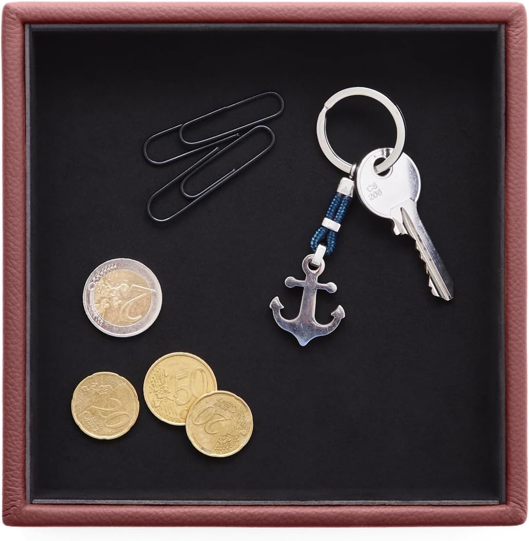 - Quadratische Taschenleerer aus echtem Leder. Es ist die perfekte Ergänzung, um alle kleinen Accessoires des täglichen Gebrauchs griffbereit aufzubewahren: Schlüssel, Uhren, Münzen, Kabel, Kopfhörer, Schmuck, Make-up, Kosmetik und Schreibwaren.