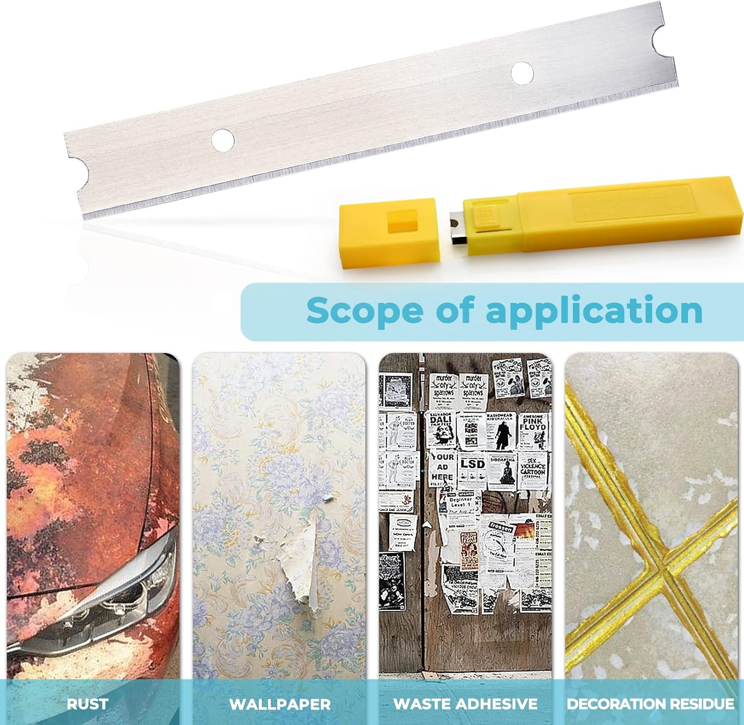 - Klingenbreite 100mm, Einfacher Austausch abgenutzter Klingen. Zum entfernen alter Tapeten und Teppiche.